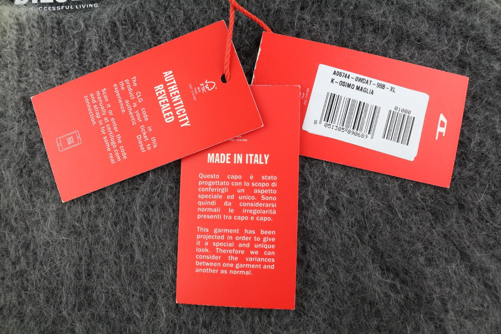 DIESEL K-Osimo vyriškas megztinis XL dydžio, megztas iš moherio vilnos mišinio, pilkas, RRP 350 €