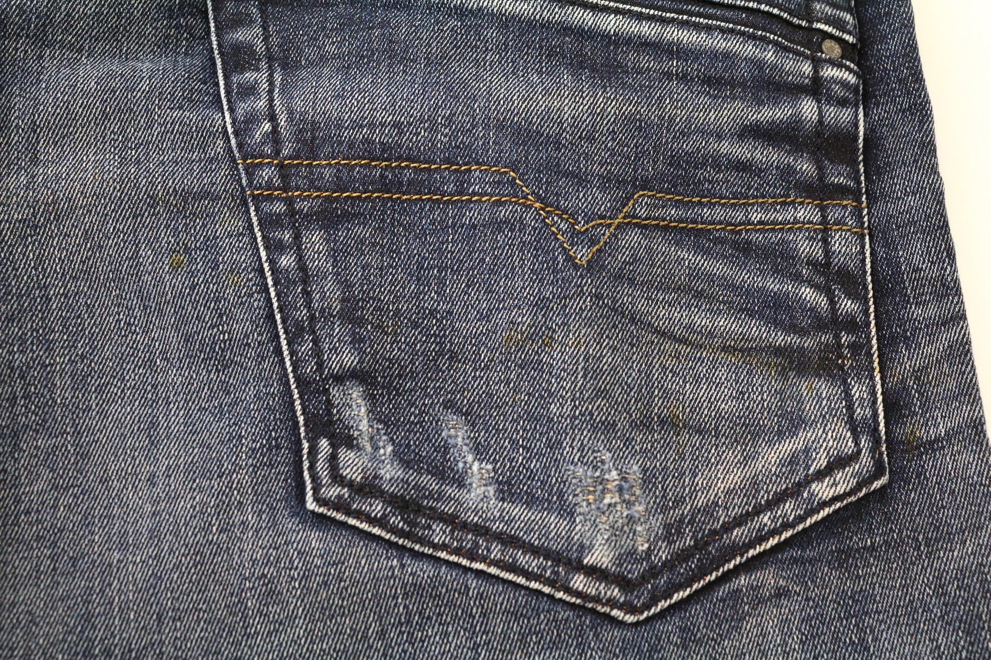 DIESEL Krayver R18V4 Ripped Slim Carrot Fit Men's Jeans W28 L32 Cotton Blue