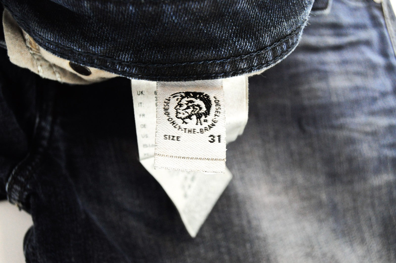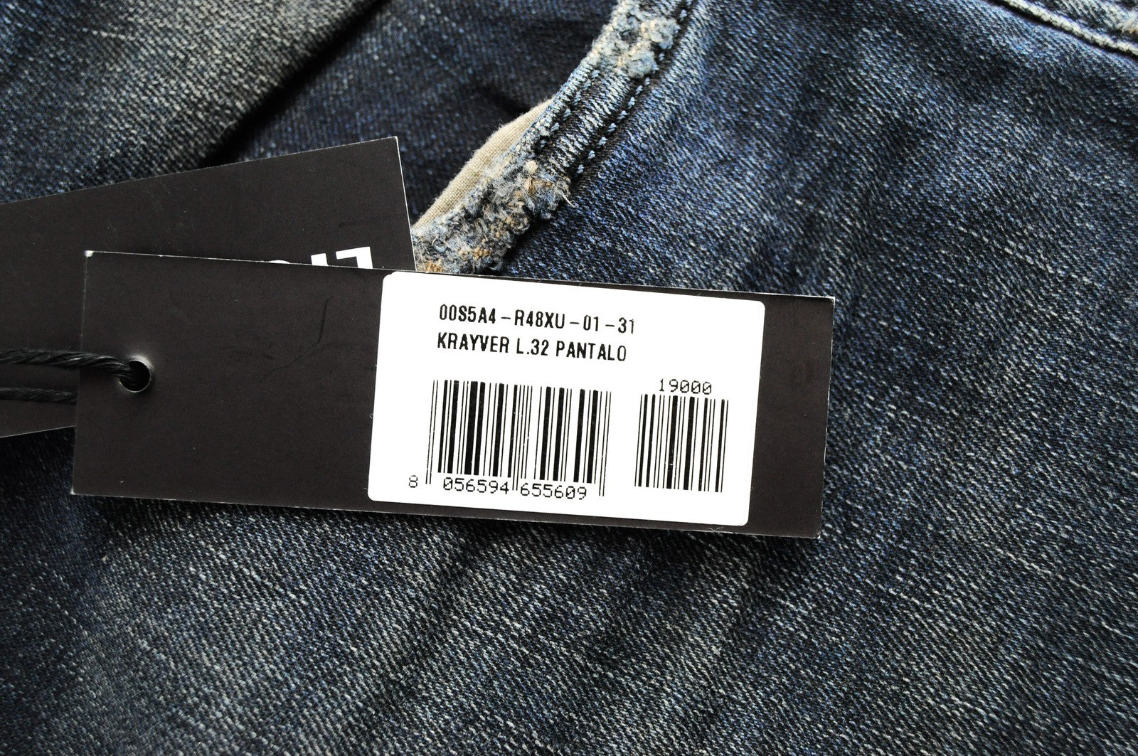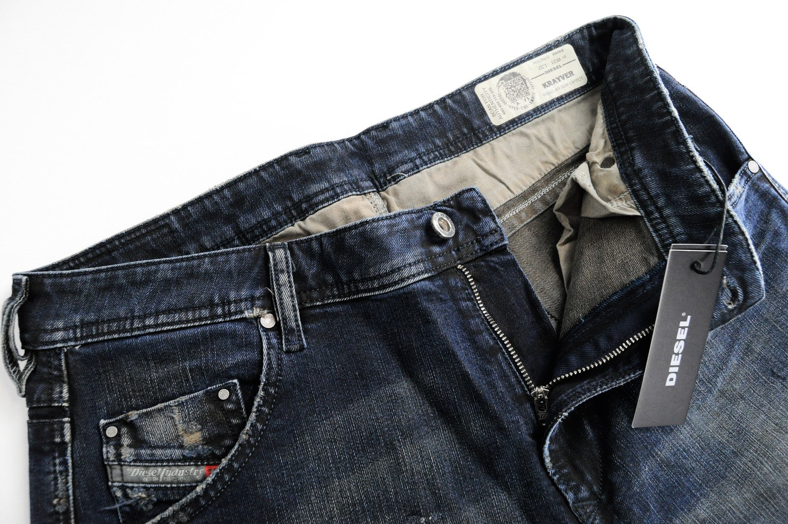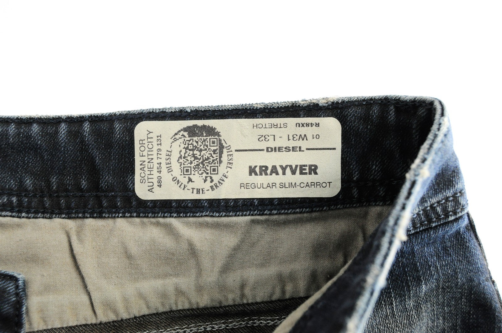 DIESEL Krayver R48XU vyriški džinsai W31/L32 mėlyni skalbti ploni morkų kirpimo medvilniniai džinsai