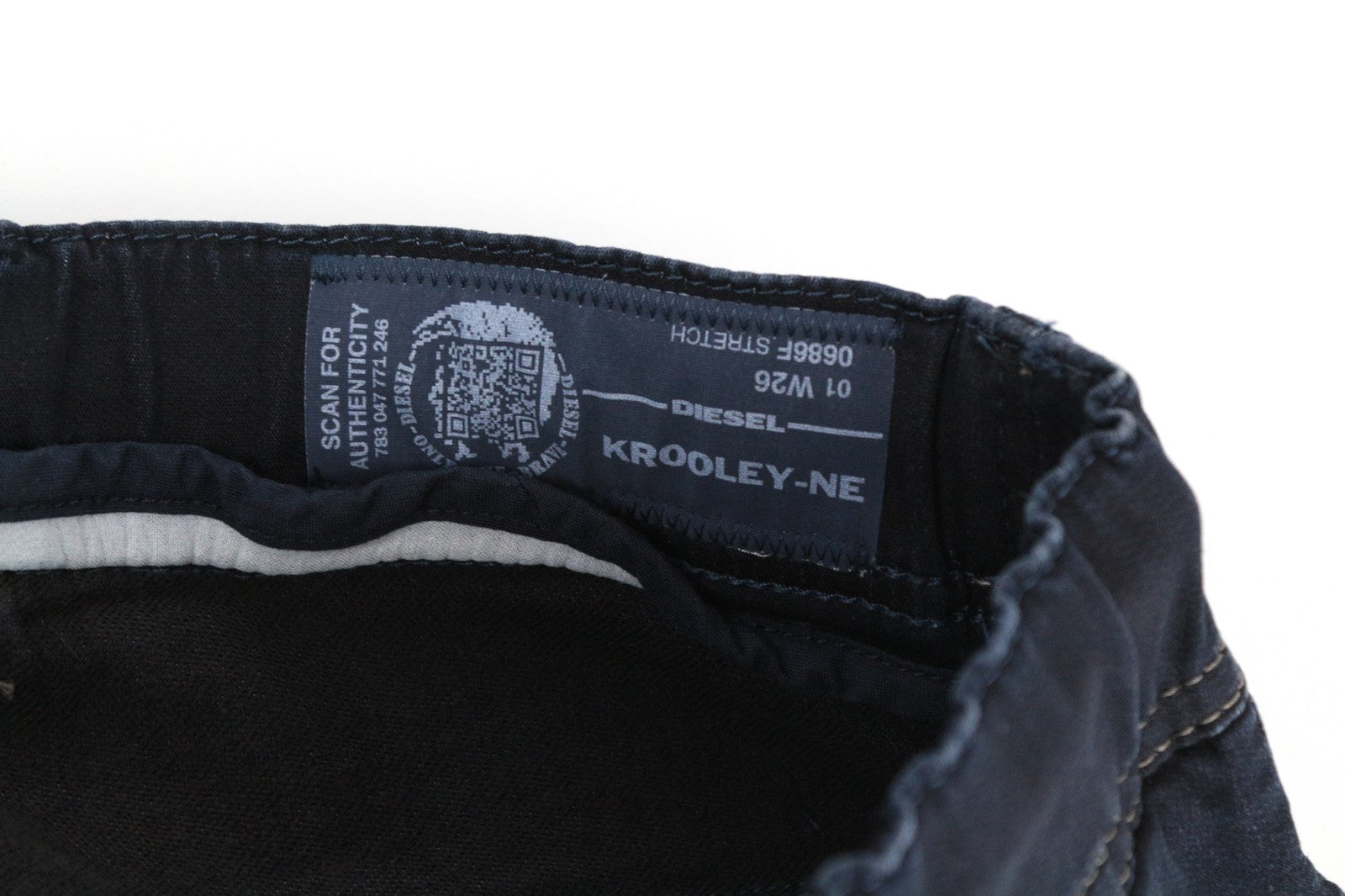 DIESEL Krooley-Ne 0686F W26 vyriški džinsai sportui, tamsūs, berniukiški, siaurėjantys.