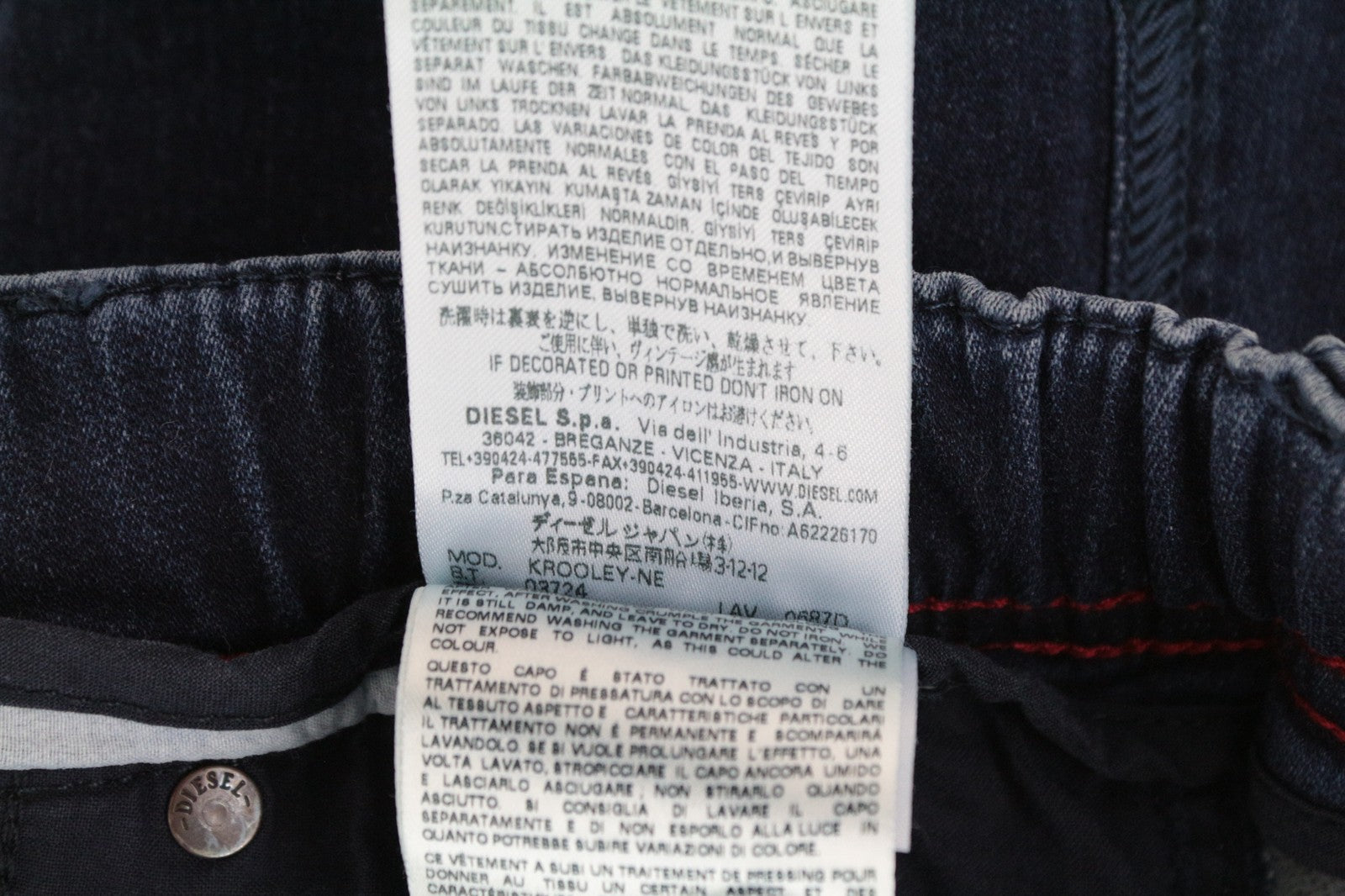 DIESEL Krooley-NE 0687D W28 vyriški džinsai su sportiniu snapeliu, siaurėjančios, kontrastingos mėlynos spalvos.