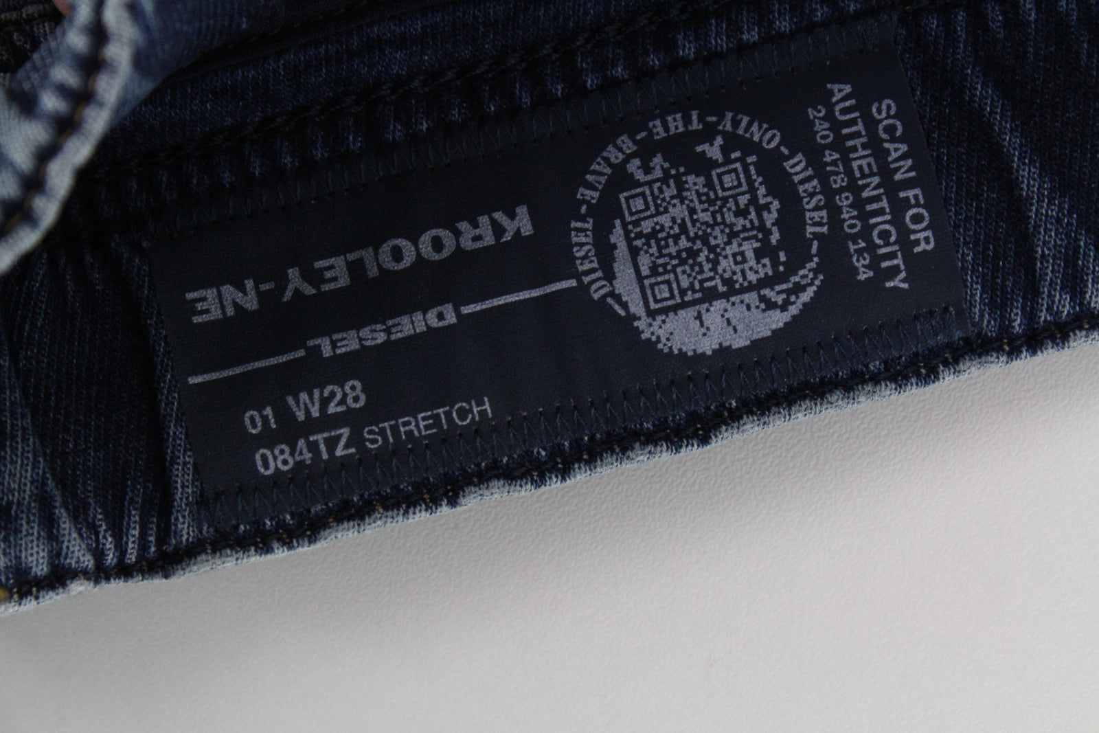 DIESEL Krooley-NE 084TZ vyriški mėlyni siaurėjantys džinsai su raišteliu, W28