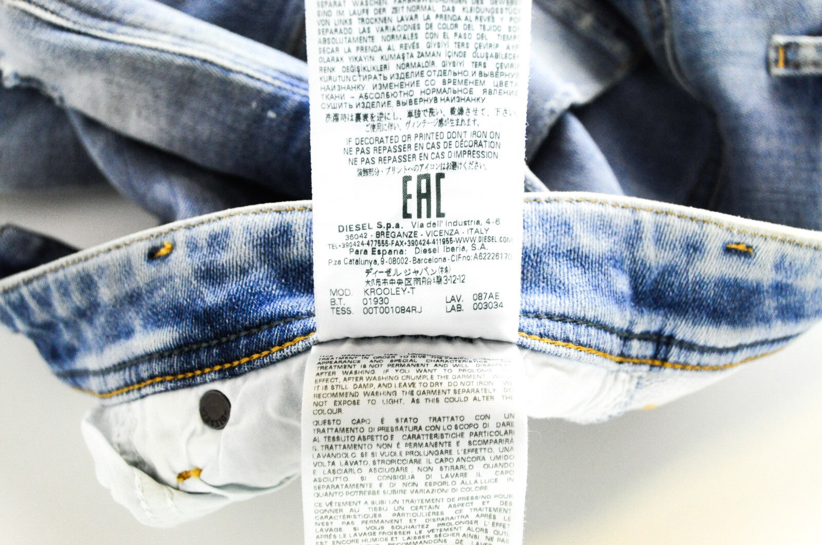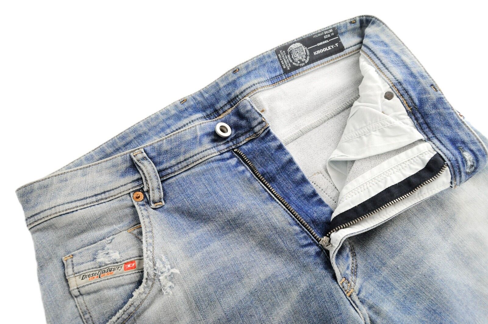 DIESEL Krooley-T 087AE vyriški džinsai W29 Sweat Jogg mėlyni, ploni, skalbti, tamprūs, plėšyti