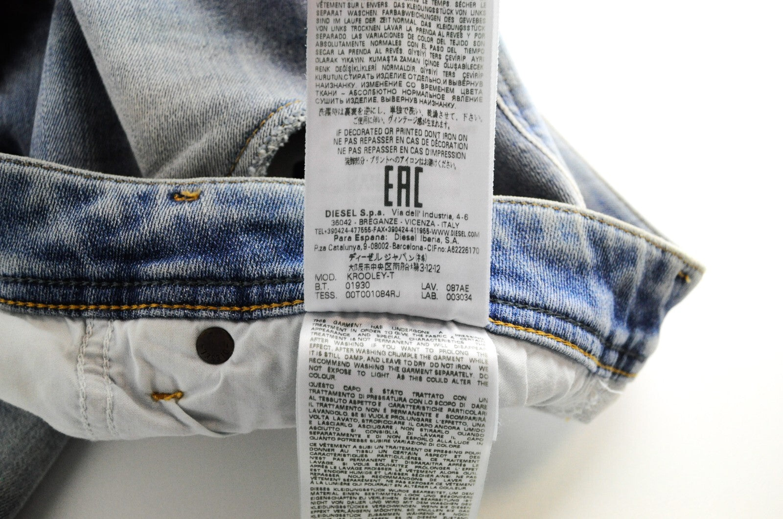 DIESEL Krooley-T 087AE vyriški džinsai W33 Slim Fit Jogg Sweat mėlyni su plėšytais tampriais dribsniais
