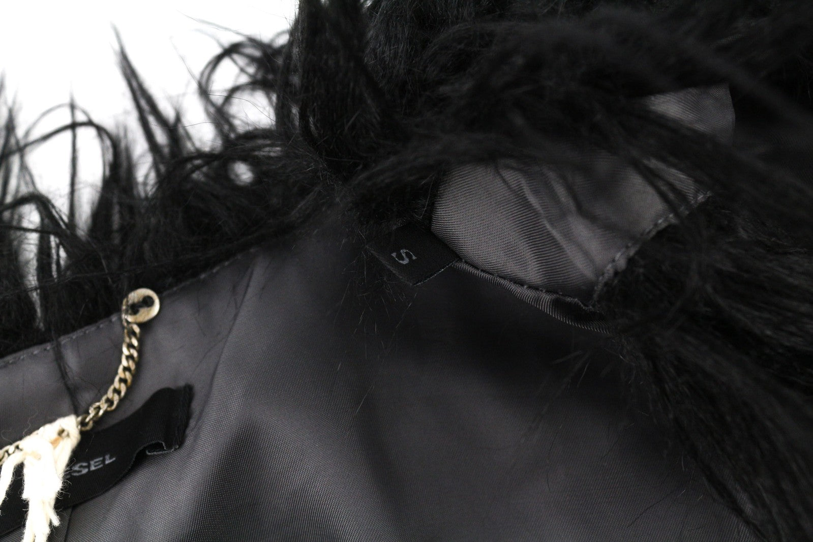 DIESEL L-Angus-A moteriška liemenė S su dirbtiniu kailiu, pūkuotu dryžuotu raštu, juoda ir balta