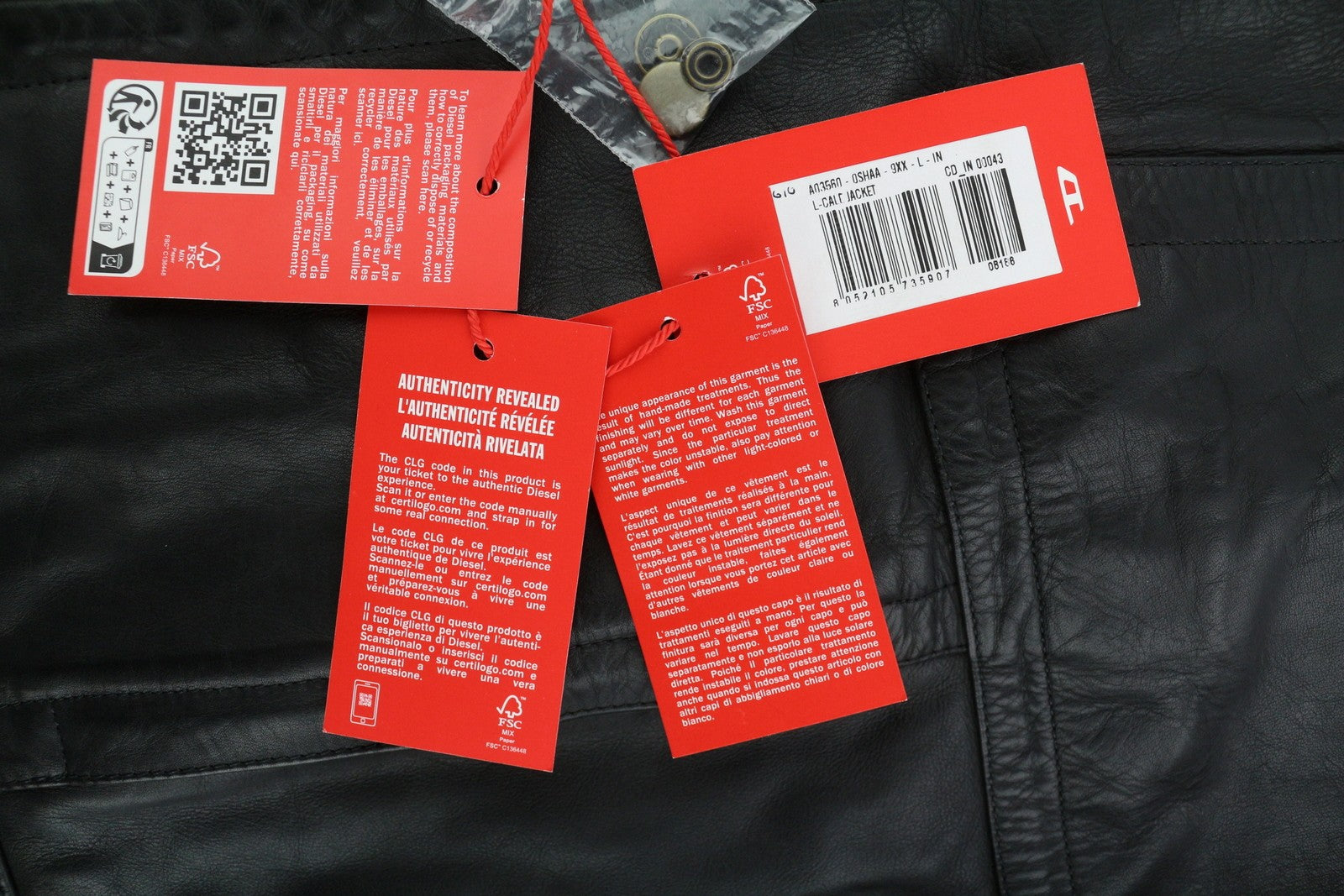 DIESEL L-Cale vyriška striukė L, juoda, odinė, su gobtuvu, RRP 650 €