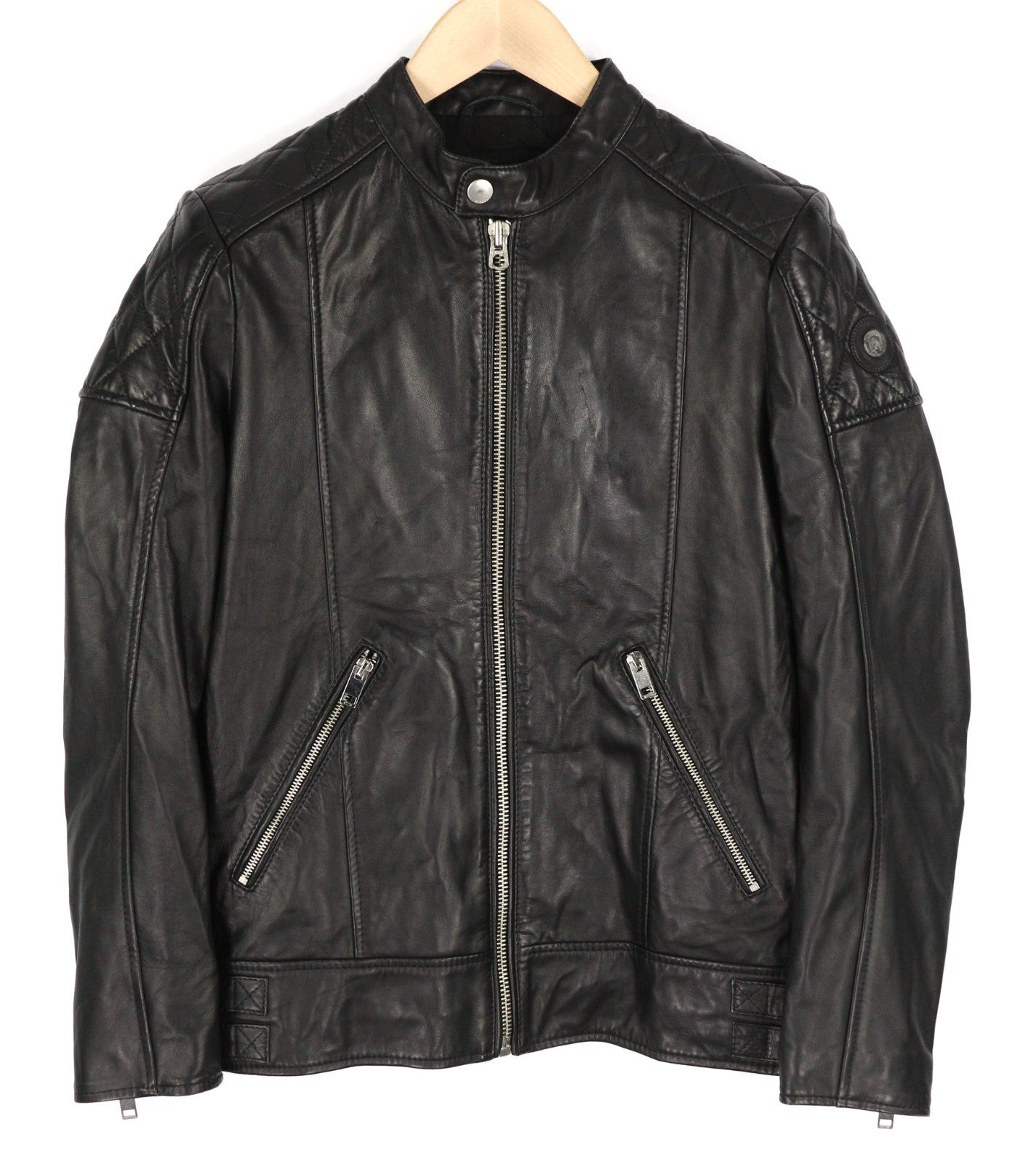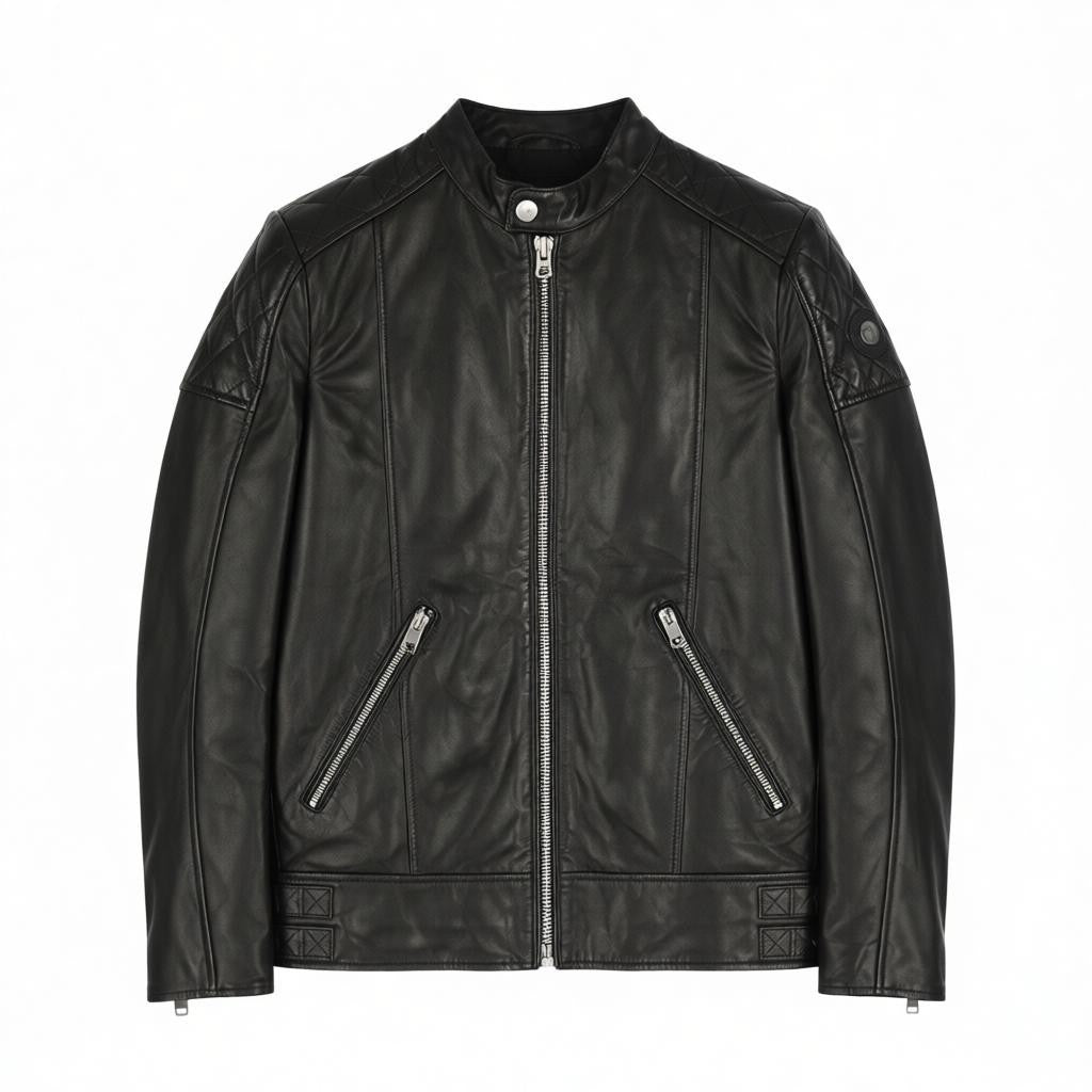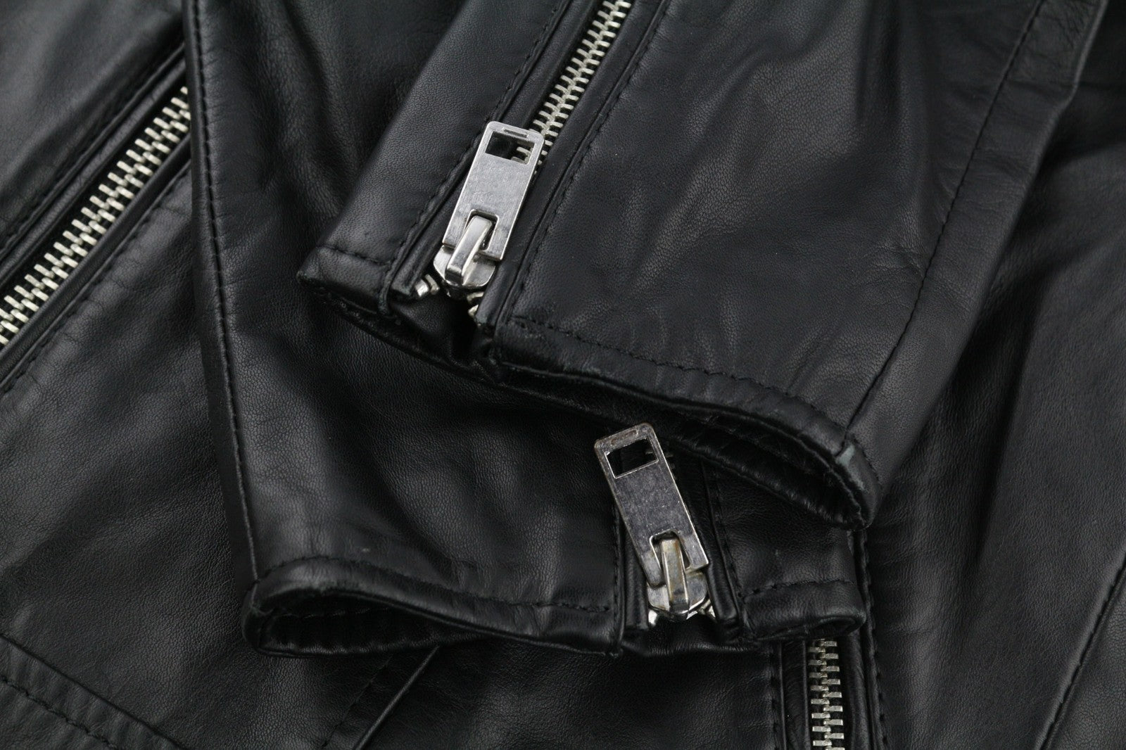 DIESEL L-Marton vyriška striukė S juoda odinė lengva striukė su užtrauktuku ant juosmens apykaklės