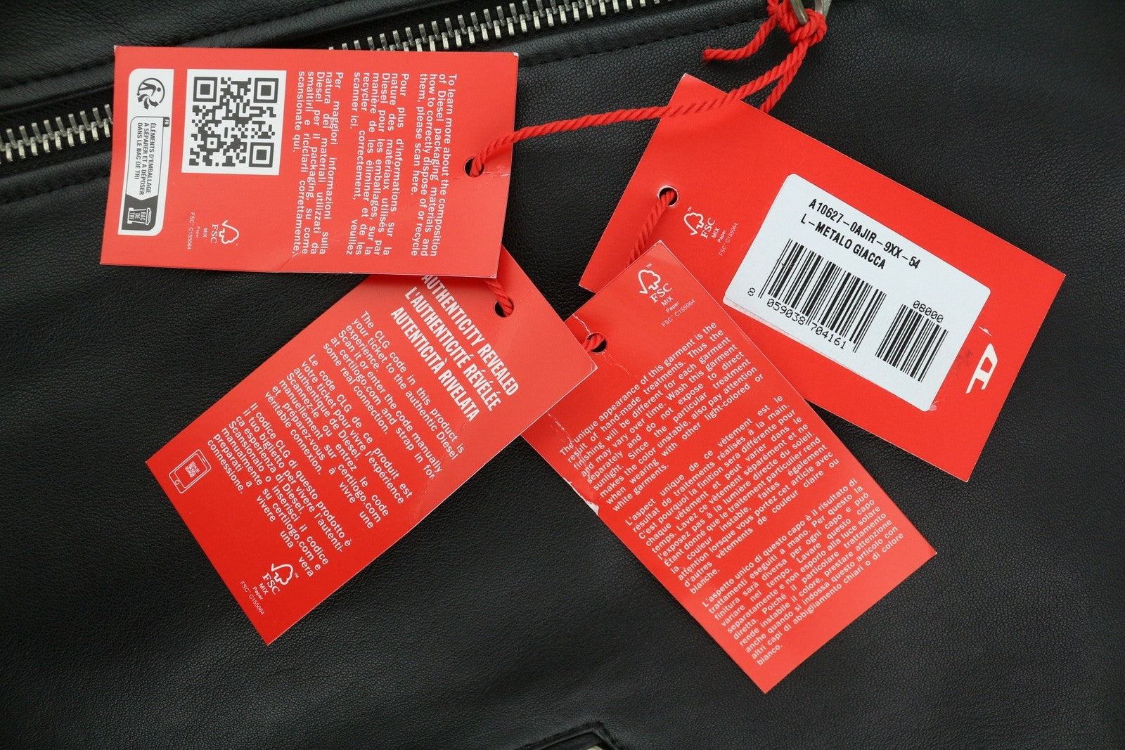 DIESEL L-Metalo Men Jacket 54 Black Sheepskin Leather Zip Lightweight RRP795