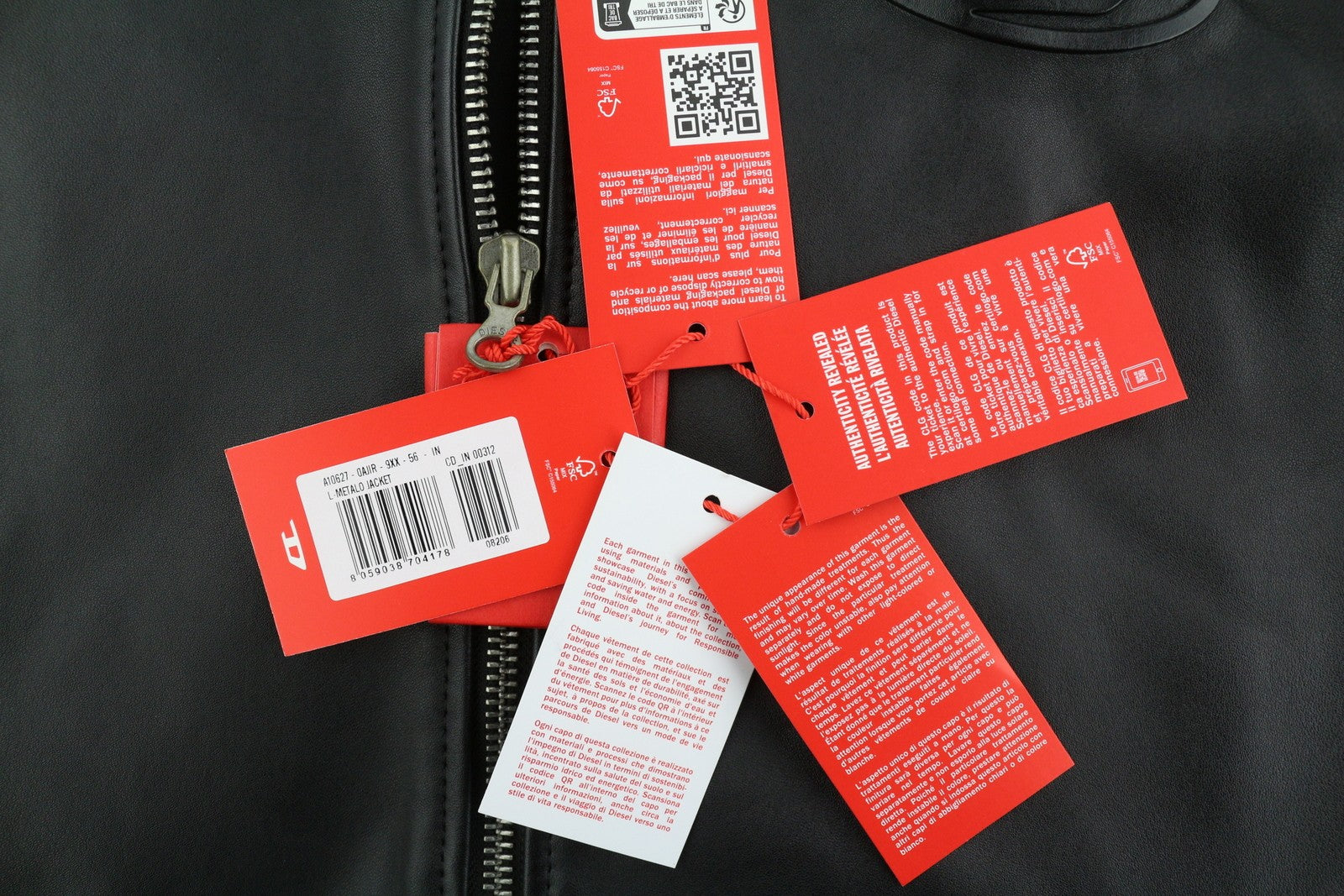 DIESEL L-Metalo vyriška striukė 56 juoda avikailio oda su užtrauktuku ir logotipu, rekomenduojama kaina – 795 €