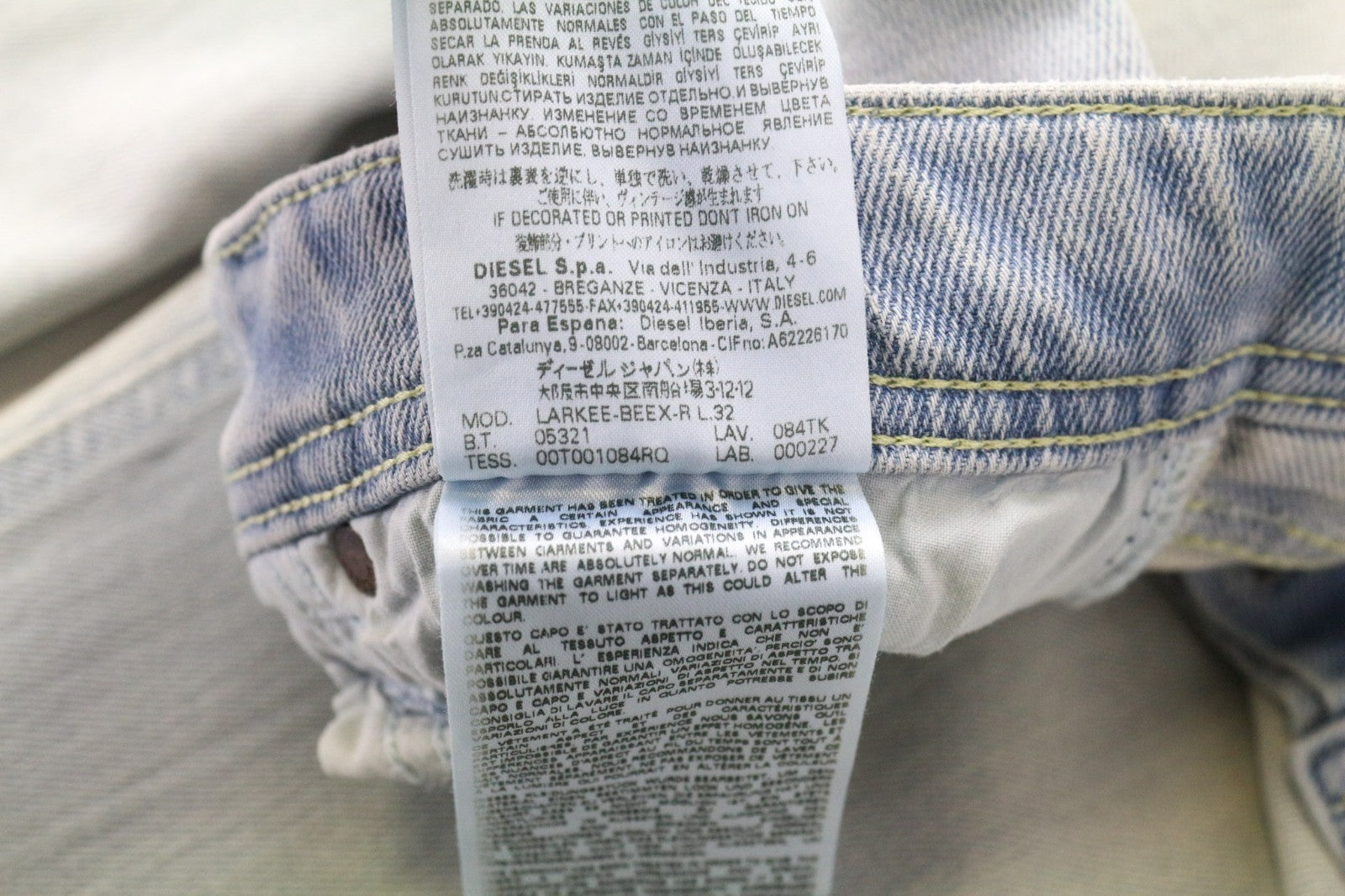 DIESEL Larkee-Beex-R 084TK vyriški džinsai W28/L32 mėlyni sendinto audinio tamprūs medvilniniai džinsai