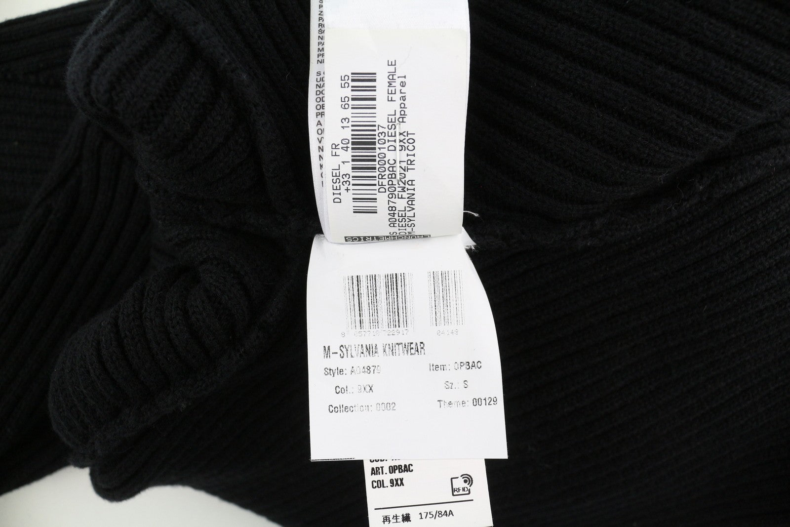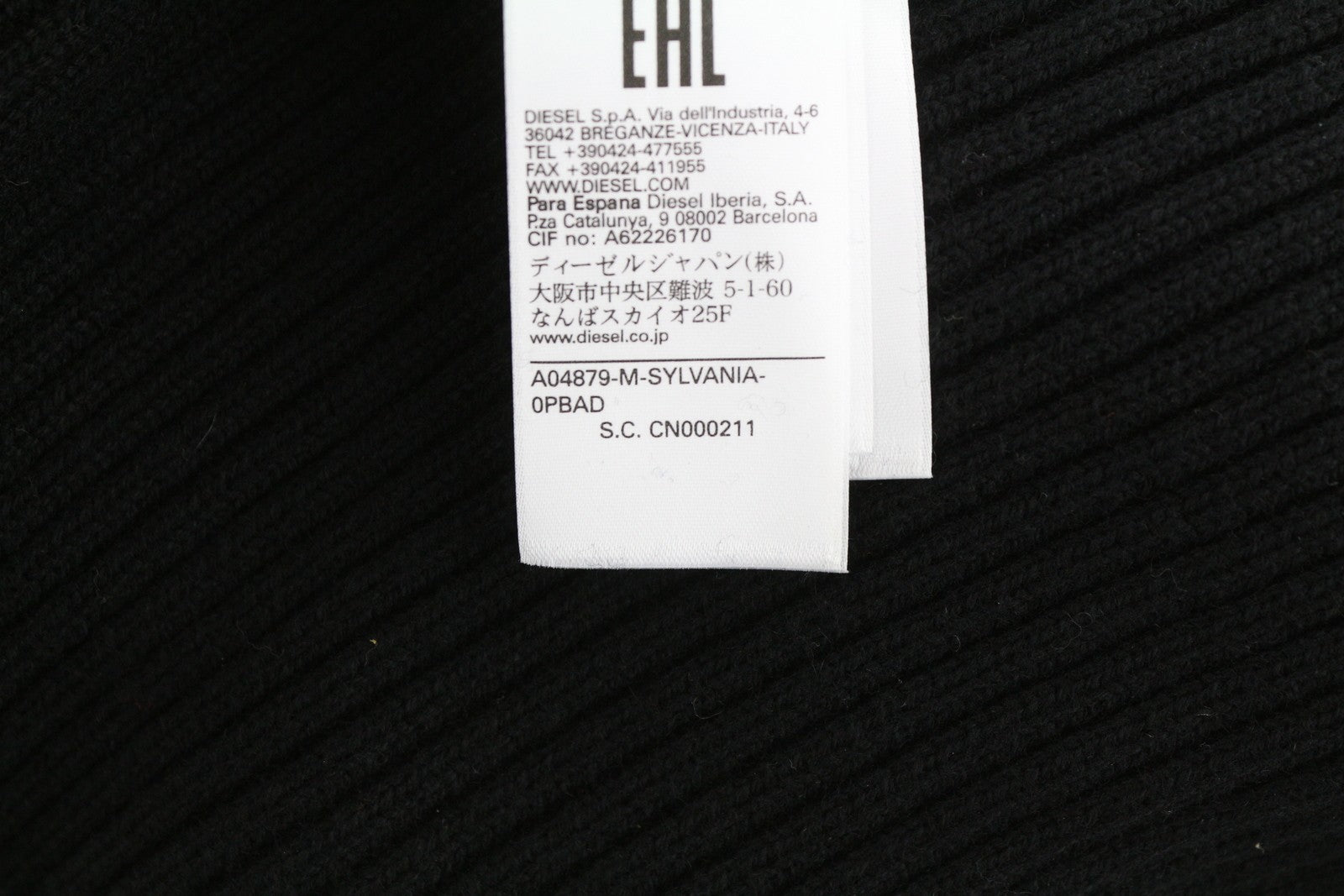 DIESEL M-Sylvania moteriškas megztinis S dydžio, juodas, vilnonis megztinis su diržu, iškirpte, rekomenduojama kaina – 195 €