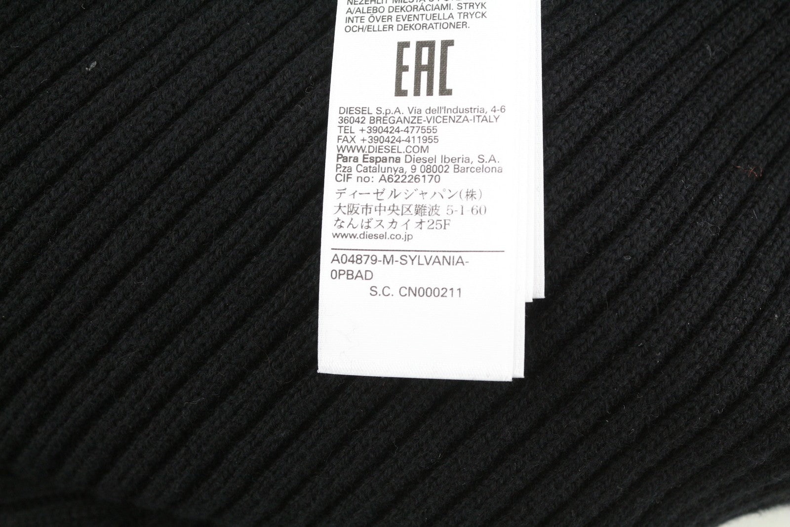 DIESEL M-Sylvania moteriškas megztinis S dydžio, juodas, vilnonis, megztas su diržu, iškirpte, rekomenduojama mažmeninė kaina – 195 €