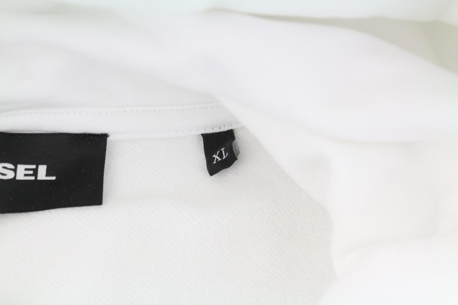 DIESEL vyriškas džemperis su gobtuvu XL dydžio, baltas, siuvinėtas priekinis logotipas, ilgomis rankovėmis