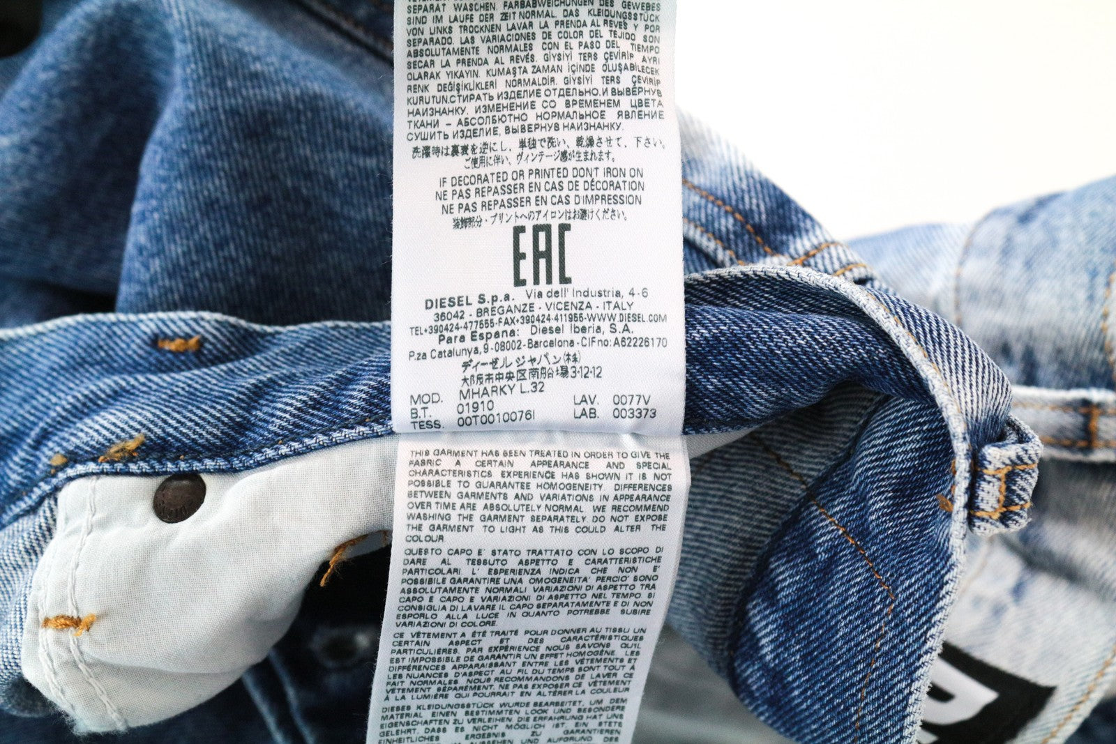 DIESEL Mharky 0077V W28/L32 Skinny vyriški džinsai balintos mėlynos spalvos medvilniniai, gryno kirpimo
