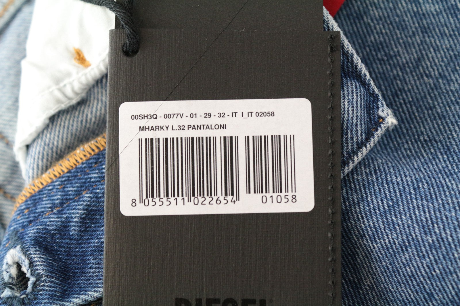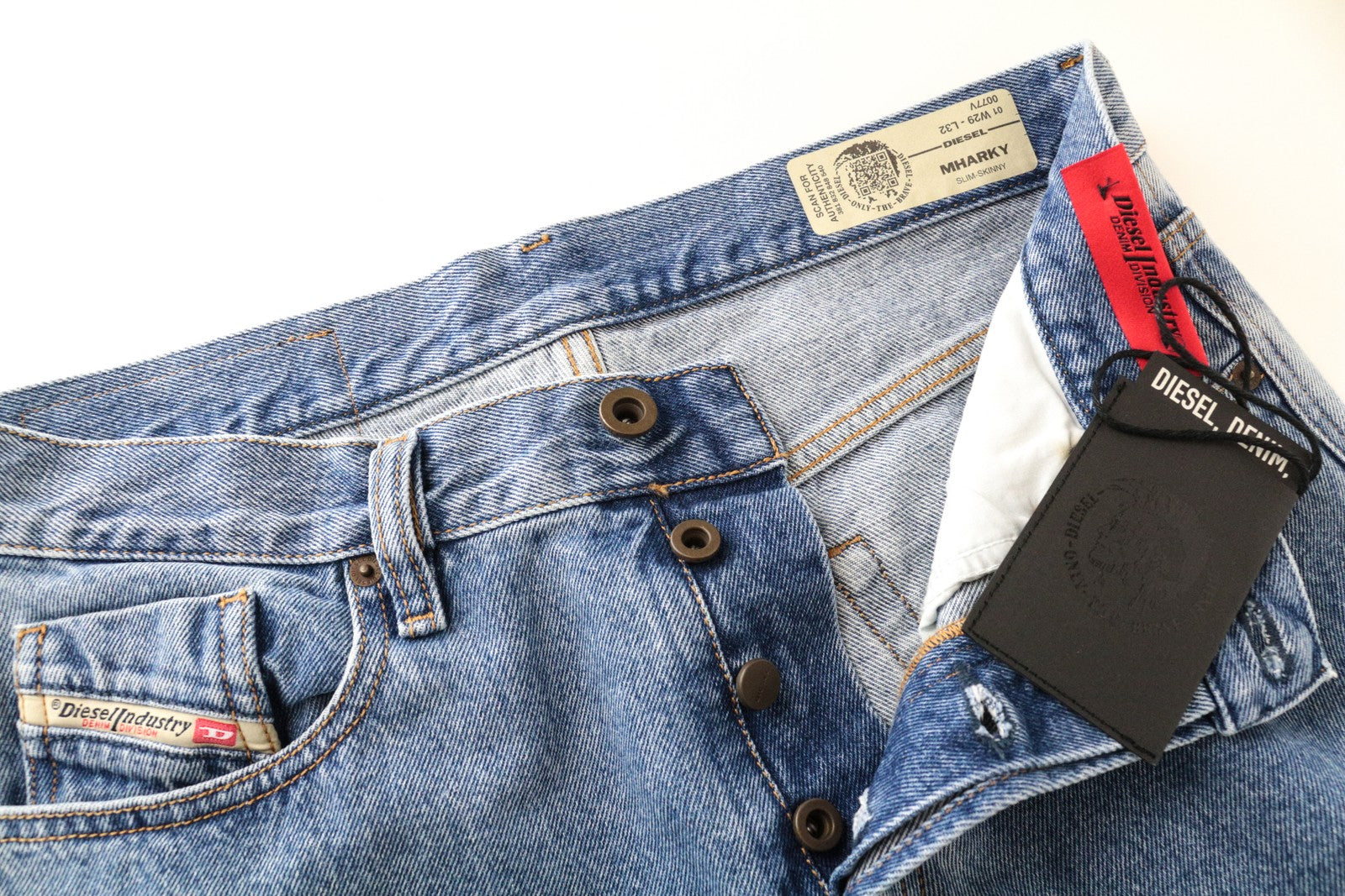 DIESEL Mharky 0077V W29/L32 balintos mėlynos spalvos vyriški ploni medvilniniai džinsai su 5 kišenėmis