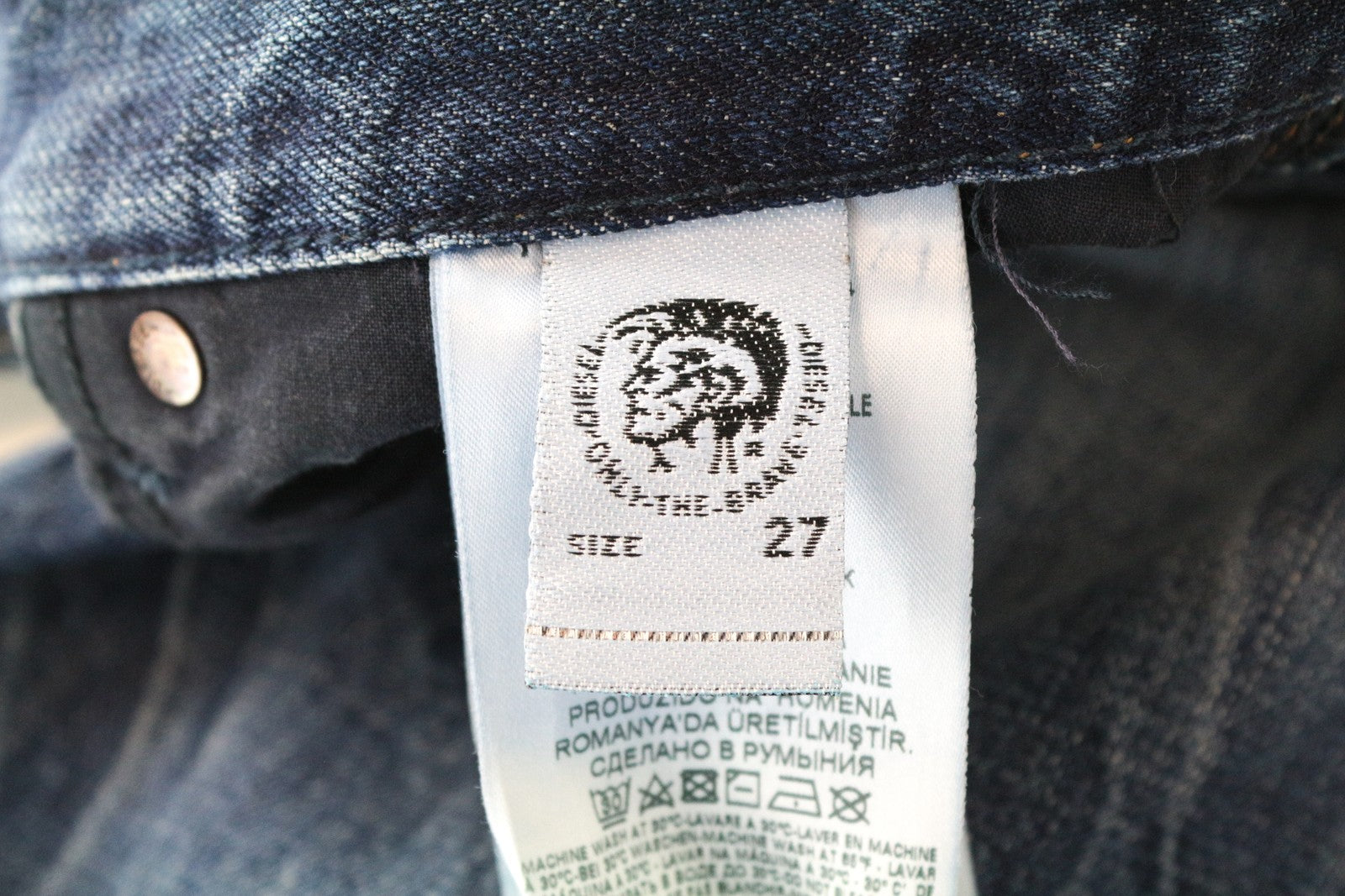 DIESEL Mharky 080AG W27 L30 mėlyni plėšyti ploni vyriški džinsai be tamprių kirpimų