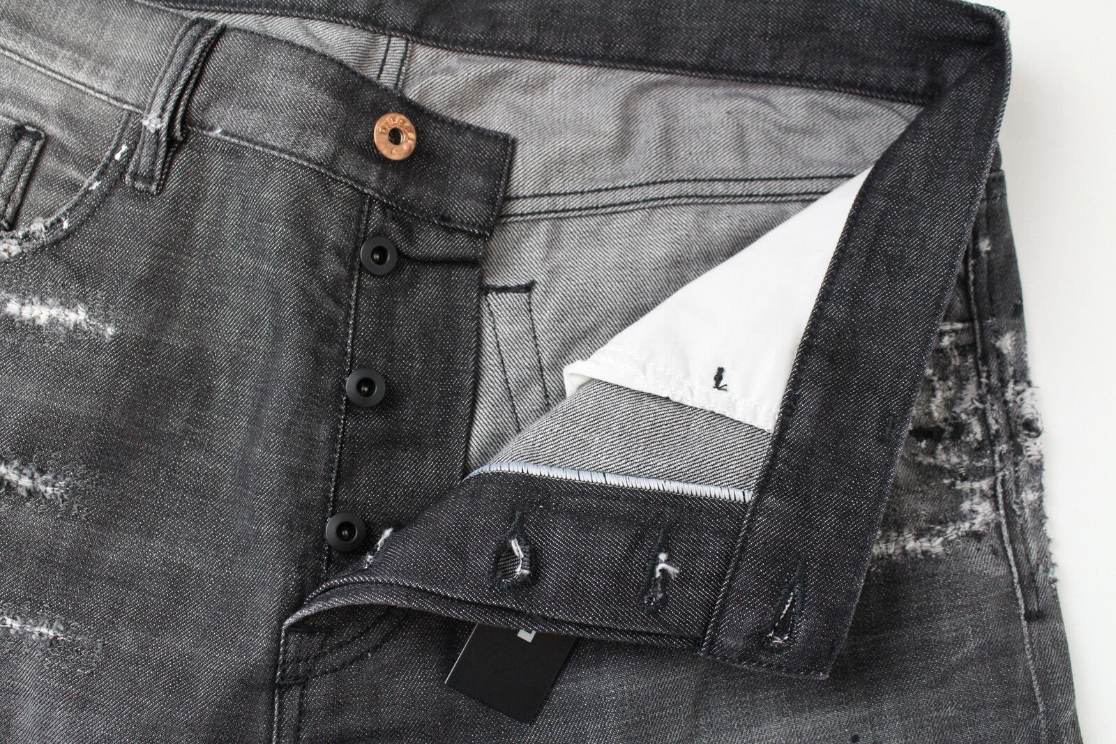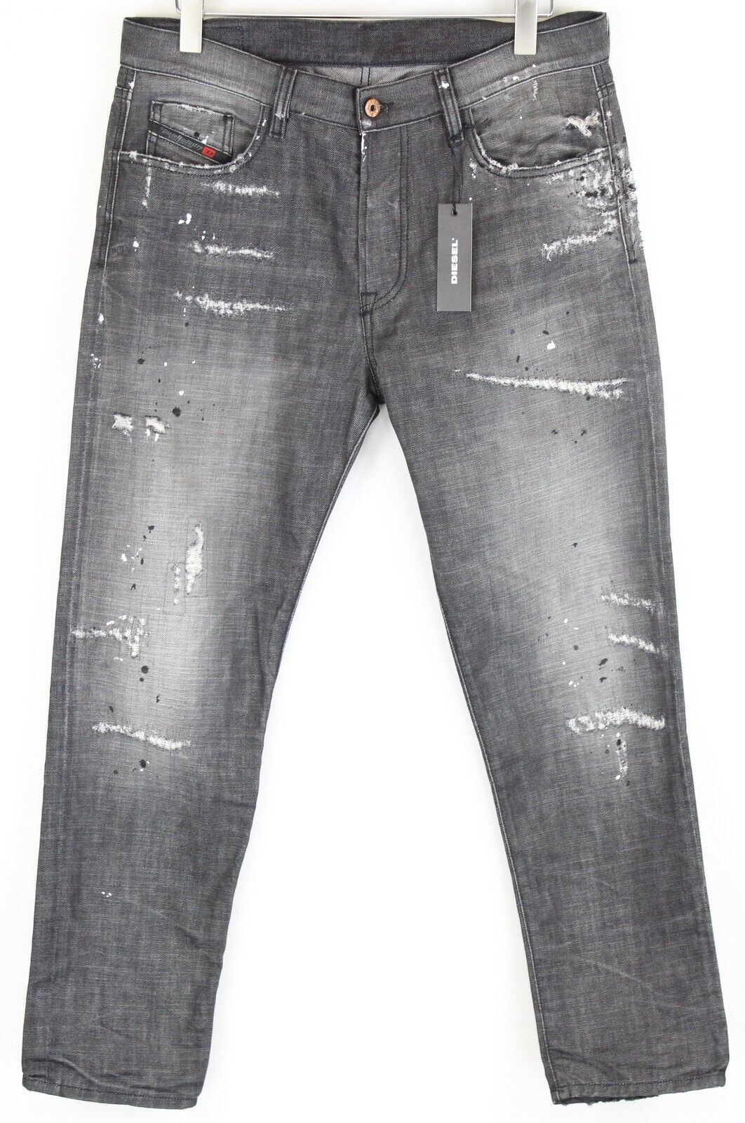 DIESEL Mharky 083AB vyriški džinsai W34 pilki, dirbtinai sendinti, ploni, su sagomis