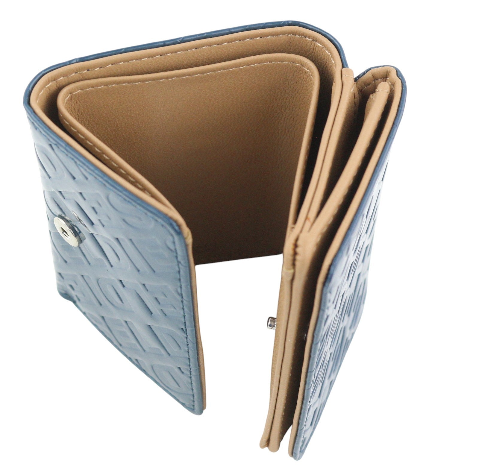 DIESEL Monogram Lorettina moteriška piniginė su mėlyna, ruda dirbtinės odos raštu, rekomenduojama kaina – 100 €
