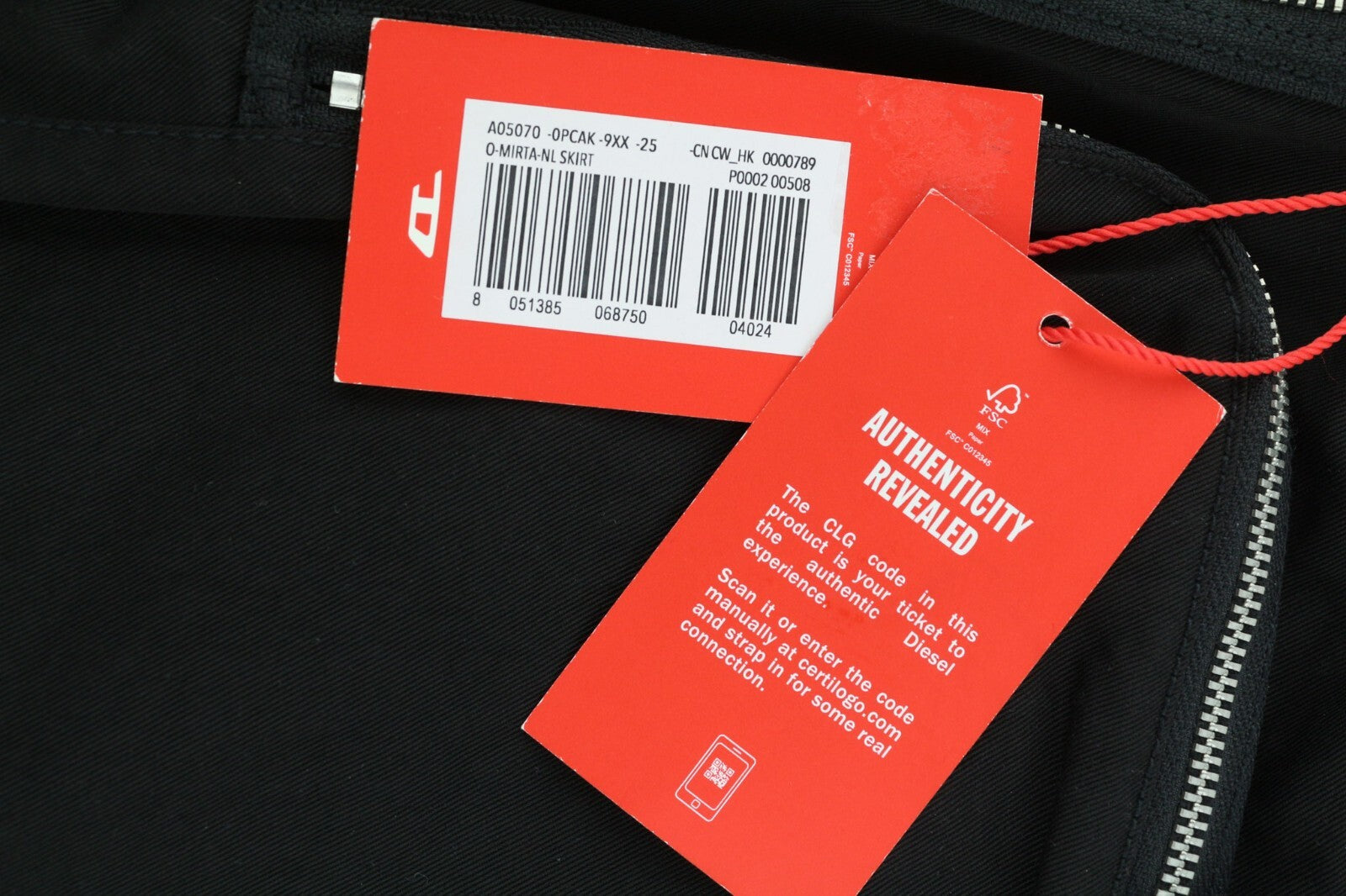 DIESEL O-Mirta-NL moteriškas sijonas, W25, juodas, su tampria juosmens kišene, užtrauktuku. RMK 275 €.