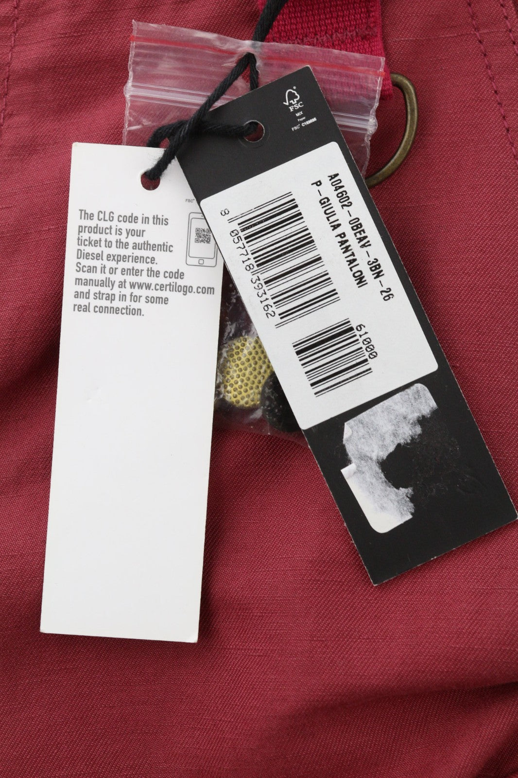 DIESEL P-Giulia moteriškos kelnės W26 Burgundijos spalvos lininės krovininės laisvalaikio stiliaus kelnės, RRP300