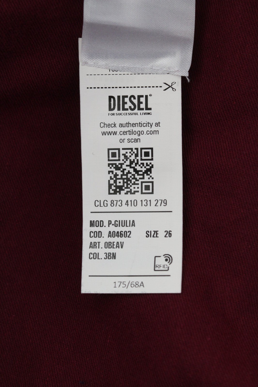 DIESEL P-Giulia moteriškos kelnės W26 Cargo laisvos bordo spalvos lininio audinio mišinio, rekomenduojama kaina – 300 €