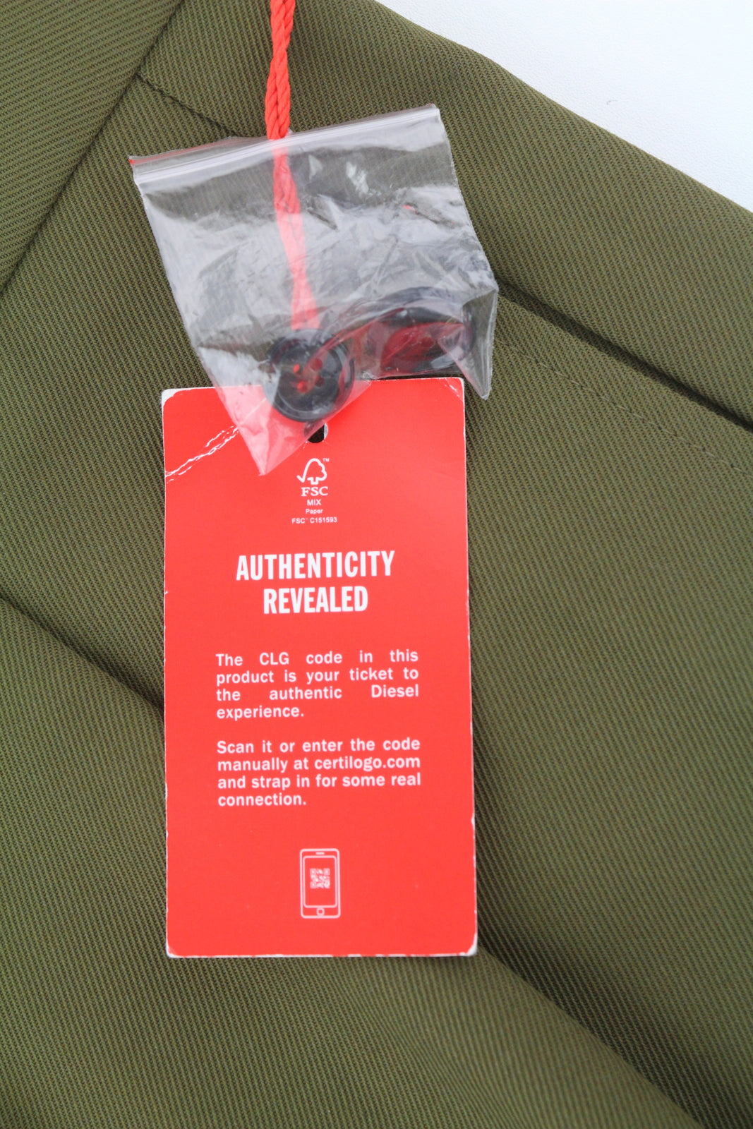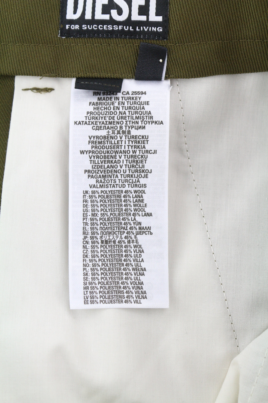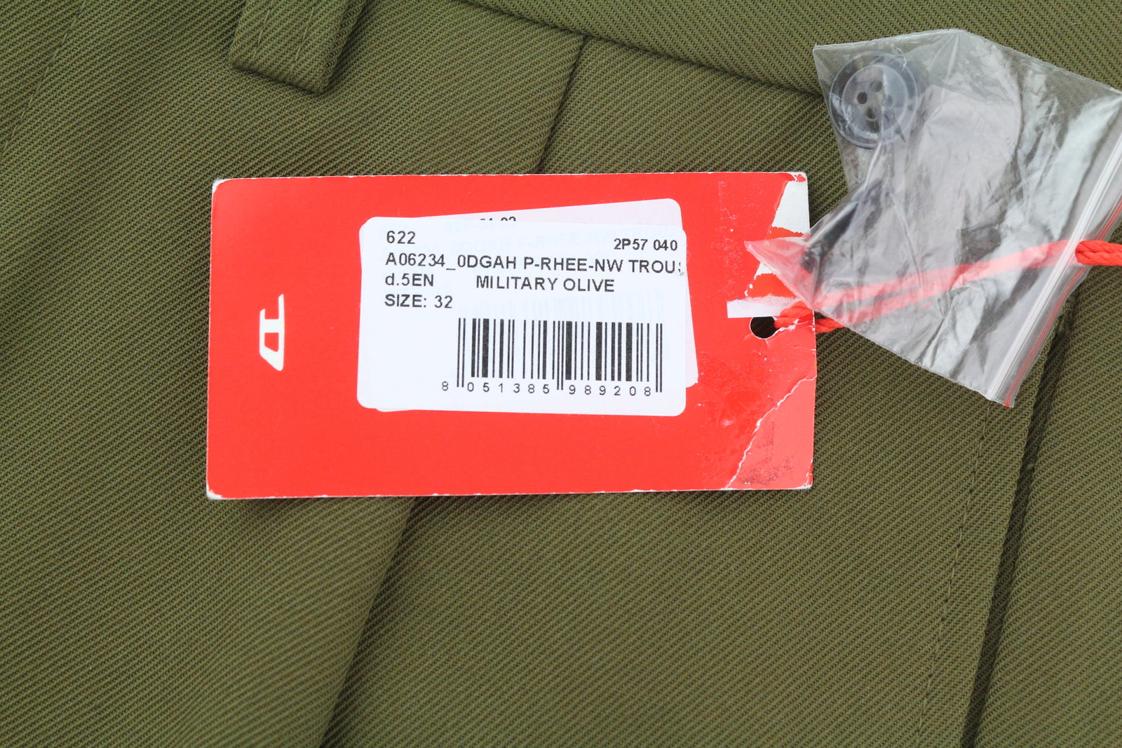 DIESEL P-Rhee-Nw vyriškos kelnės W32 žalios vilnos mišinio su klostėmis ir užtrauktuku, rekomenduojama mažmeninė kaina – 283 €