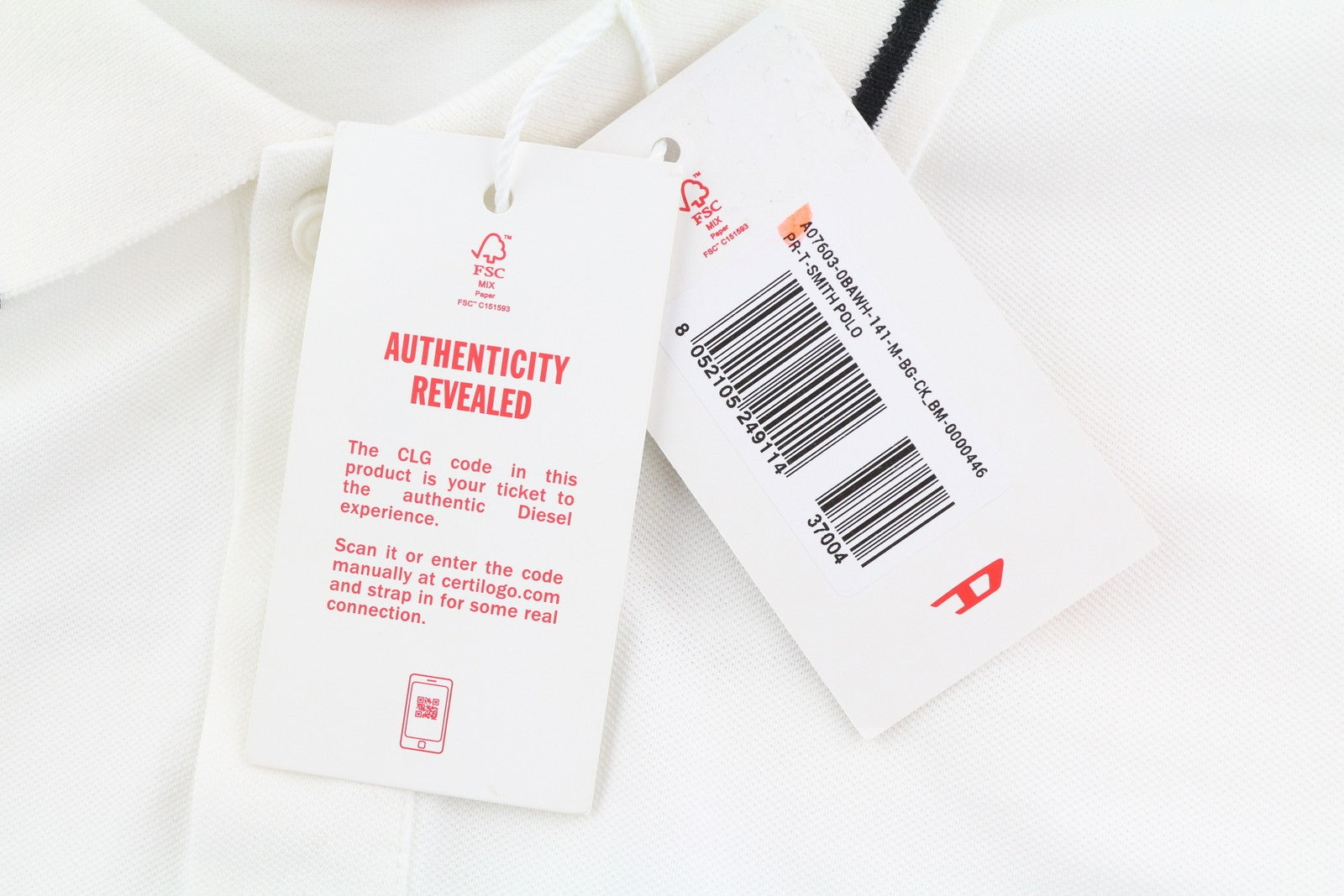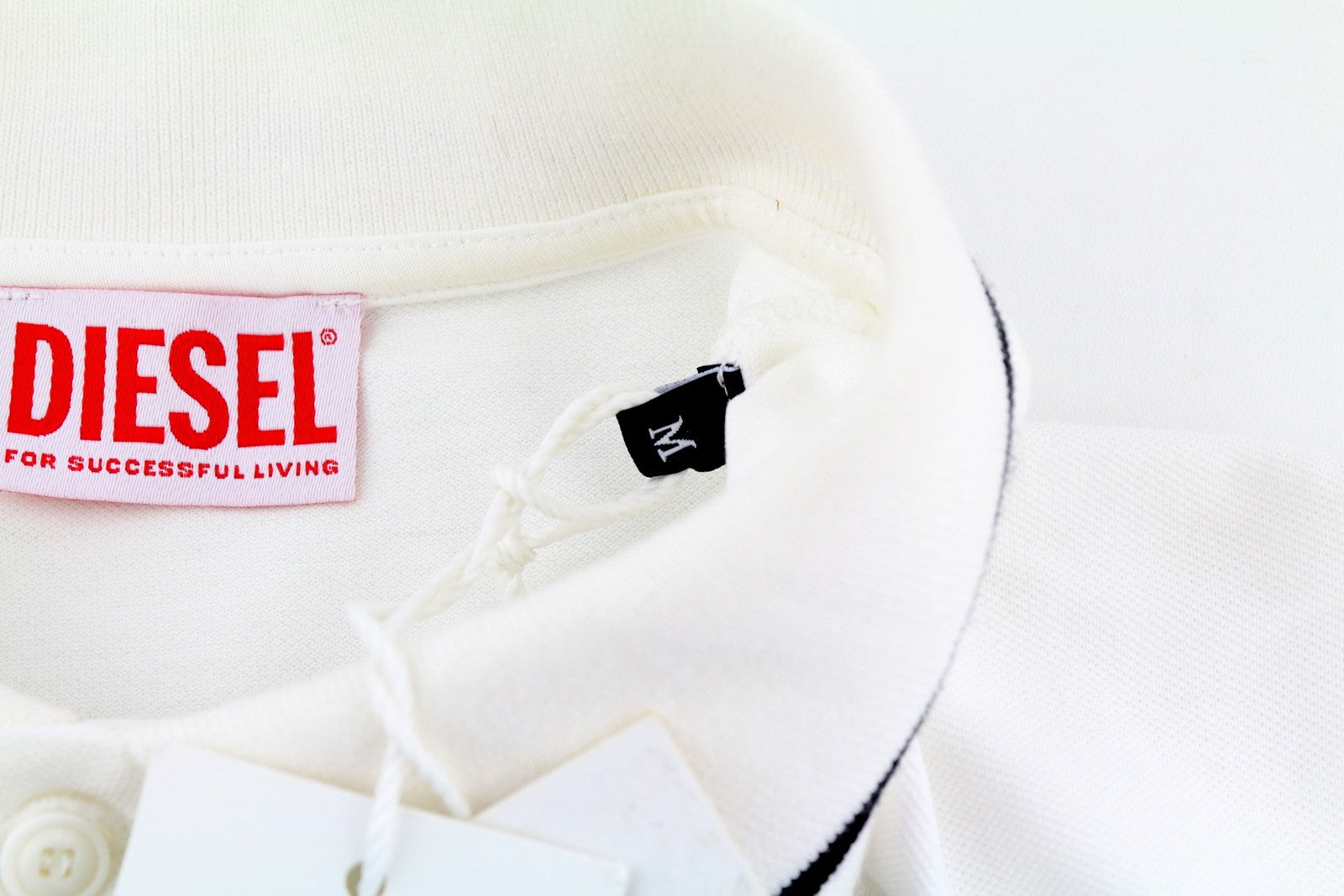 DIESEL PR-T-Smith vyriški marškinėliai su trumpomis rankovėmis, polo apykakle, raštuoti, balti, rekomenduojama kaina 125 €