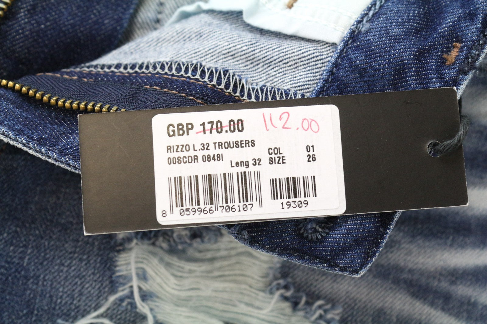 DIESEL Rizzo 0848I moteriški bateliai W26/L32 mėlyni, plėšyti, ploni, tiesūs, grynos medvilnės.