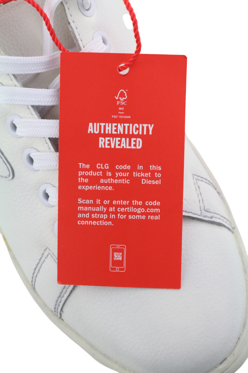 DIESEL S-Athene žemo lygio vyriški sportbačiai, EU41, balti odiniai sportbačiai su raišteliais, rekomenduojama kaina – 160 €