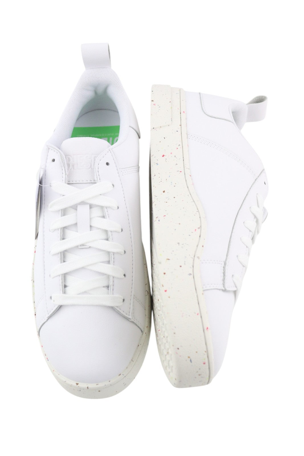 DIESEL S-Clever žemi nėrinių vyriški sportbačiai, 44.5 dydis, baltos odos, migdolų nosis, rekomenduojama kaina – 140 €