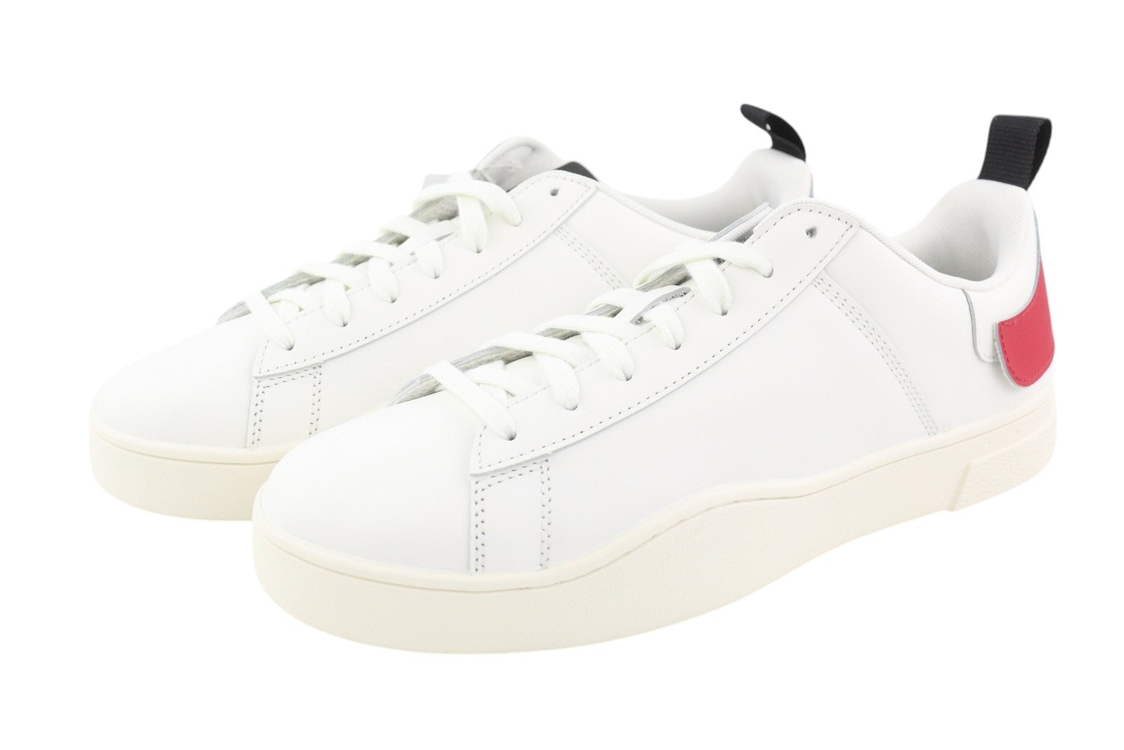 DIESEL S-Clever žemi nėriniuoti vyriški sportbačiai, 44,5 dydžio, balti, raudoni, odiniai, rekomenduojama kaina – 140 €.