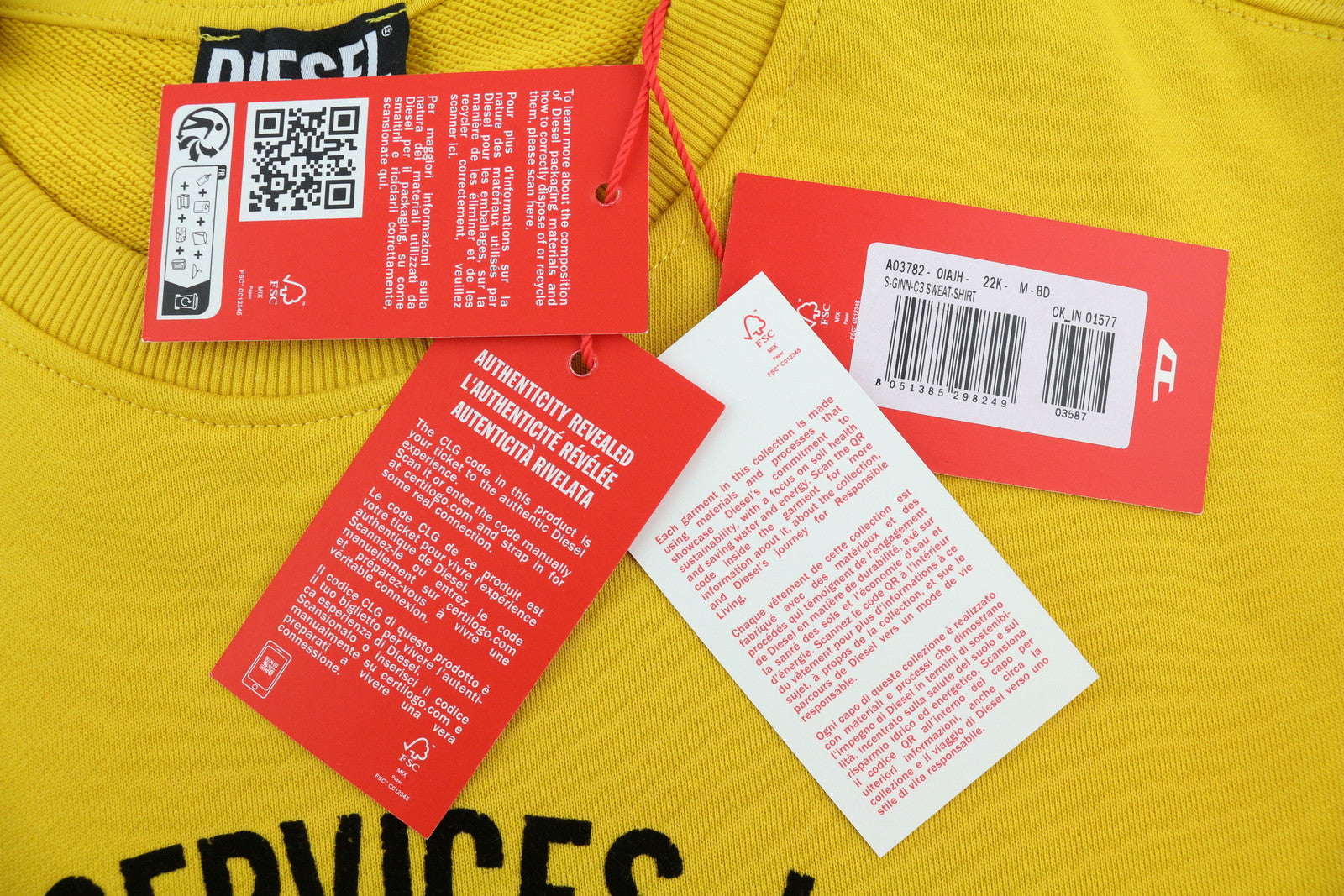 DIESEL S-Ginn-C3 vyriškas džemperis M, geltonas, apvalios iškirptės, ilgomis rankovėmis, rekomenduojama kaina – 110 €