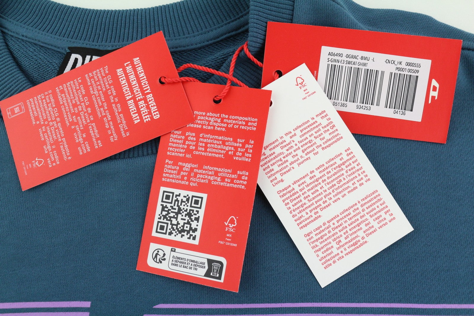 DIESEL S-Ginn-E3 vyriškas džemperis su apvalia apykakle, L dydžio, vidutinės mėlynos spalvos, rekomenduojama kaina – 150 €