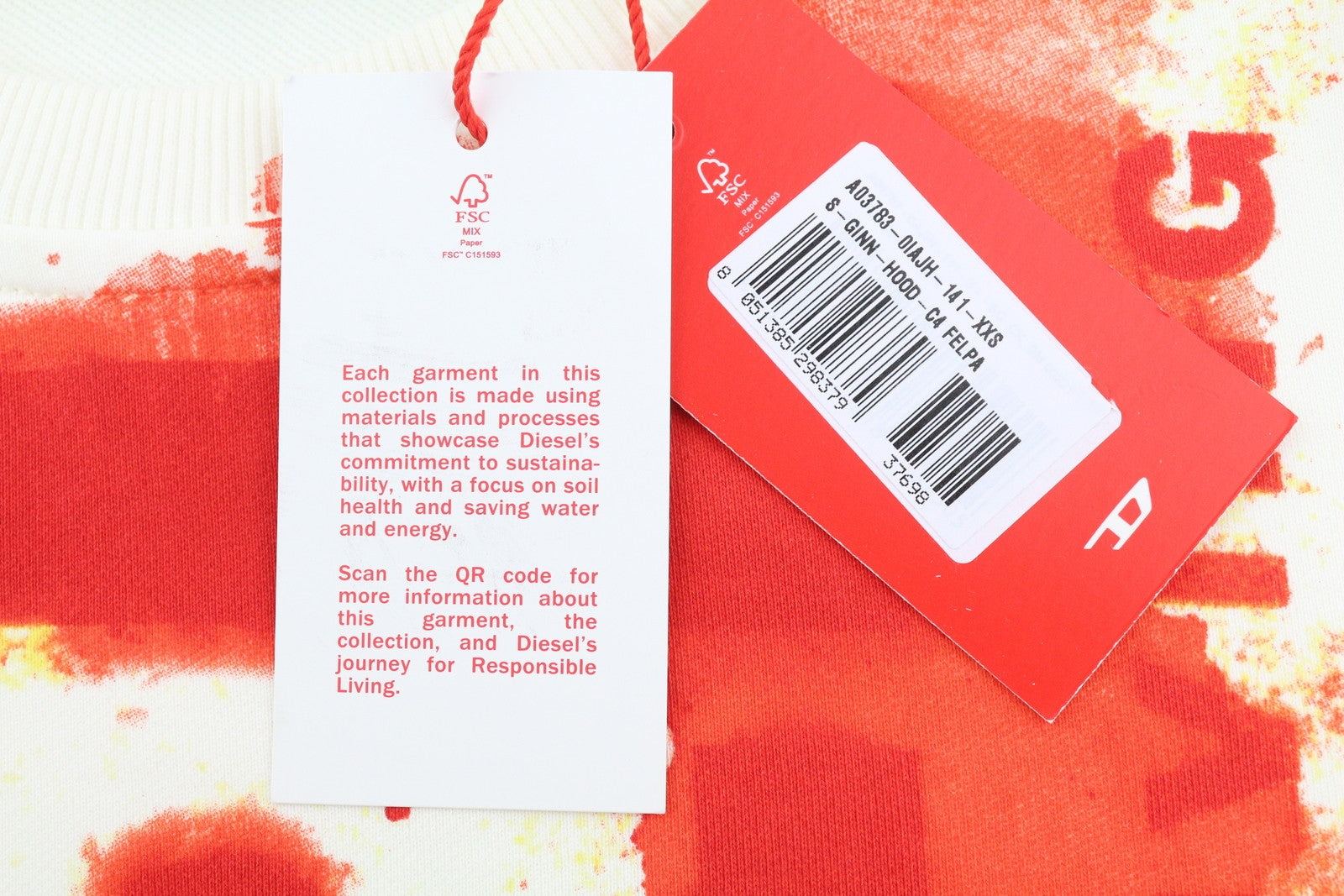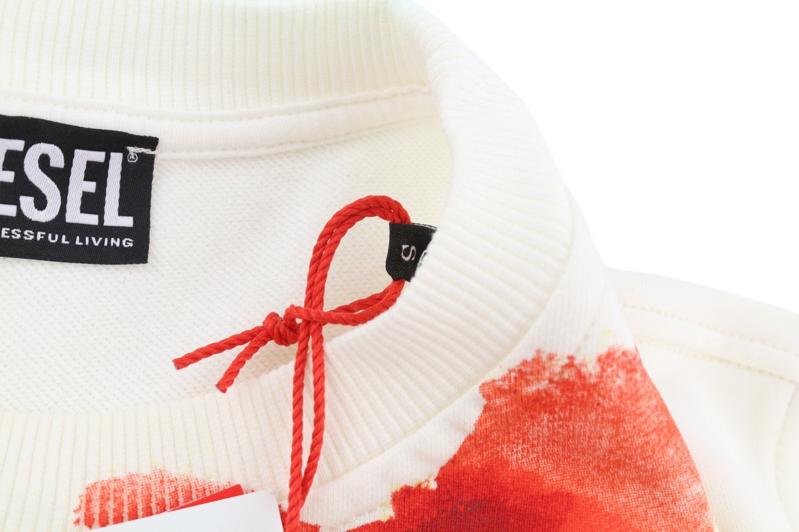 DIESEL S-Ginn-E5 vyriškas džemperis su baltu M dydžio megztiniu, apvalia kaklo iškirpte, priekyje logotipu ir pamušalu.