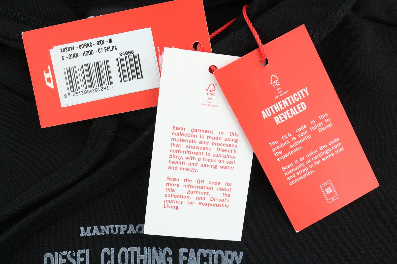 DIESEL S-Ginn-Hood-C7 vyriškas džemperis su gobtuvu M, juodas, su kengūros kišene, rekomenduojama kaina – 150 €