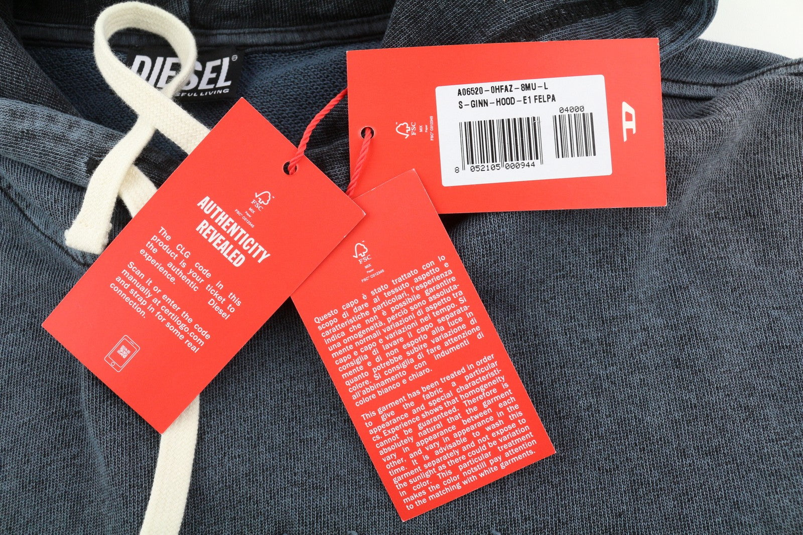 DIESEL S-Ginn-Hood-E1 vyriškas džemperis su gobtuvu L, pilkas, su gobtuvu, kengūros spalvos, rekomenduojama kaina – 195 €