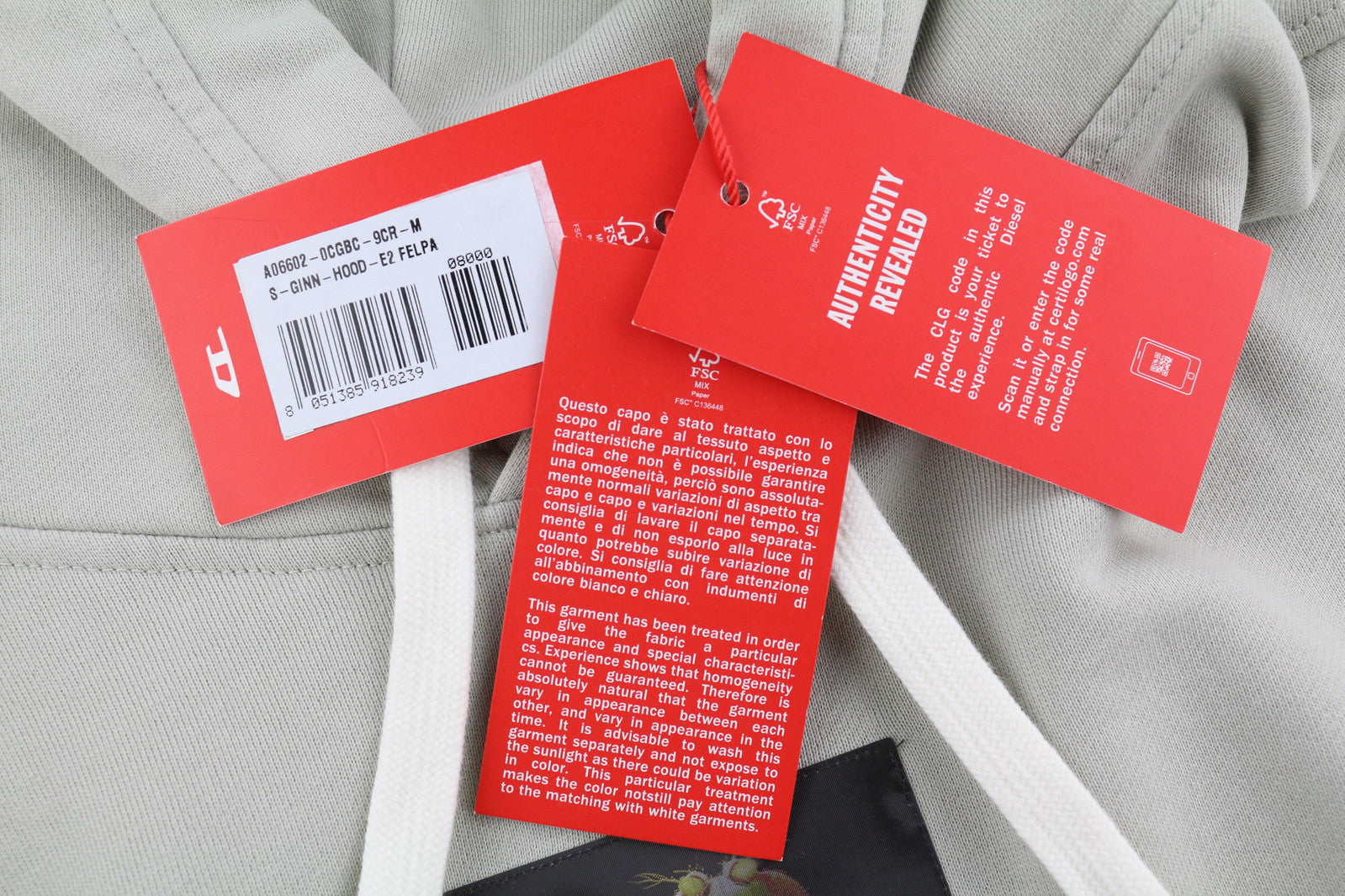 DIESEL S-Ginn-Hood-E2 vyriškas džemperis su gobtuvu M dydžio, pilkas, megztinis su kengūra, didelis dydis, rekomenduojama kaina – 195 €