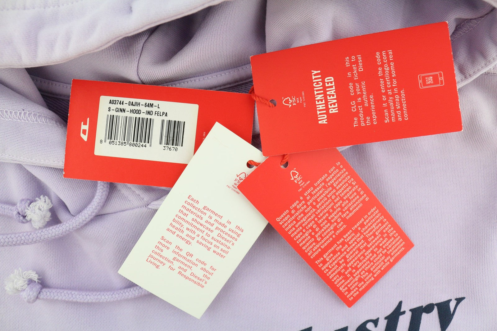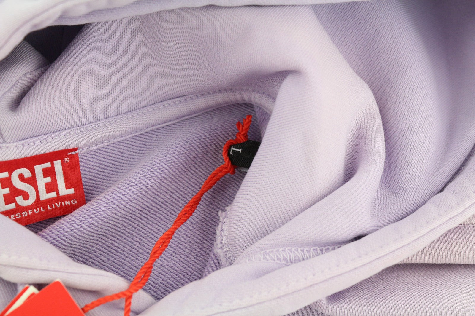 DIESEL S-Ginn-Hood-Ind vyriškas džemperis su gobtuvu, L dydžio, šviesiai violetinis, megztinis su kengūra, rekomenduojama kaina – 175 €