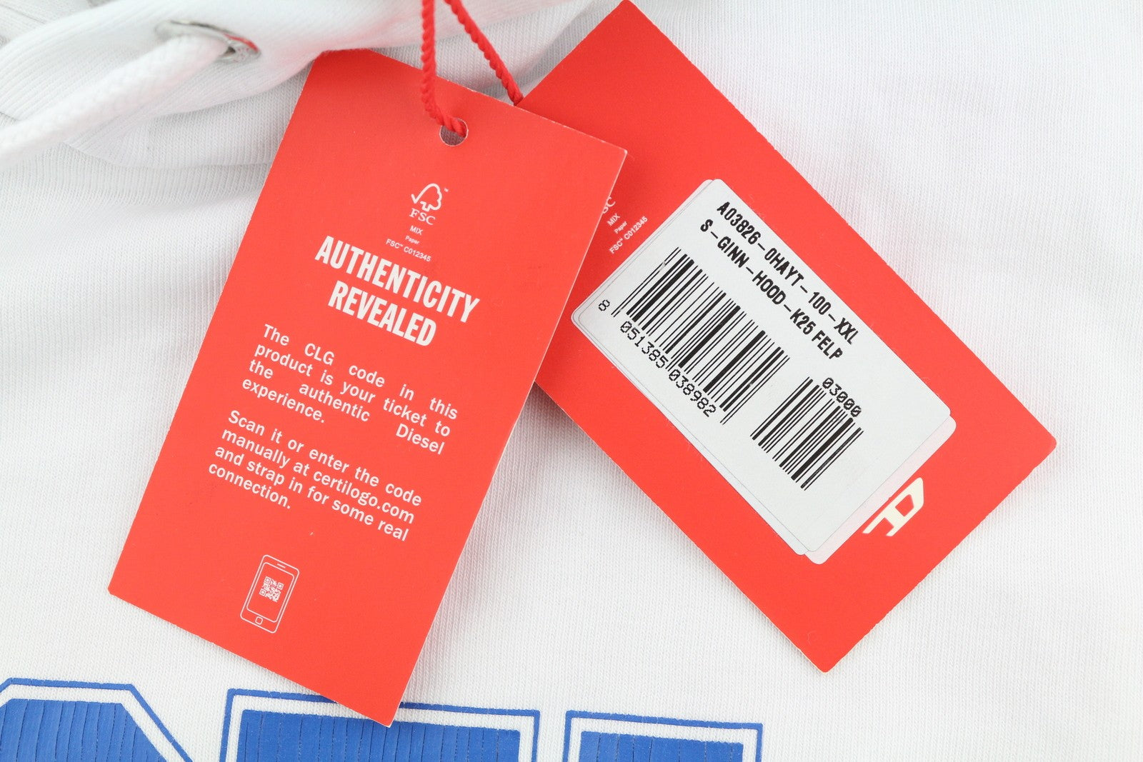 DIESEL S-Ginn-Hood-K25 vyriškas džemperis su gobtuvu, 2XL, baltas, su kengūros kišene, rekomenduojama kaina – 125 €