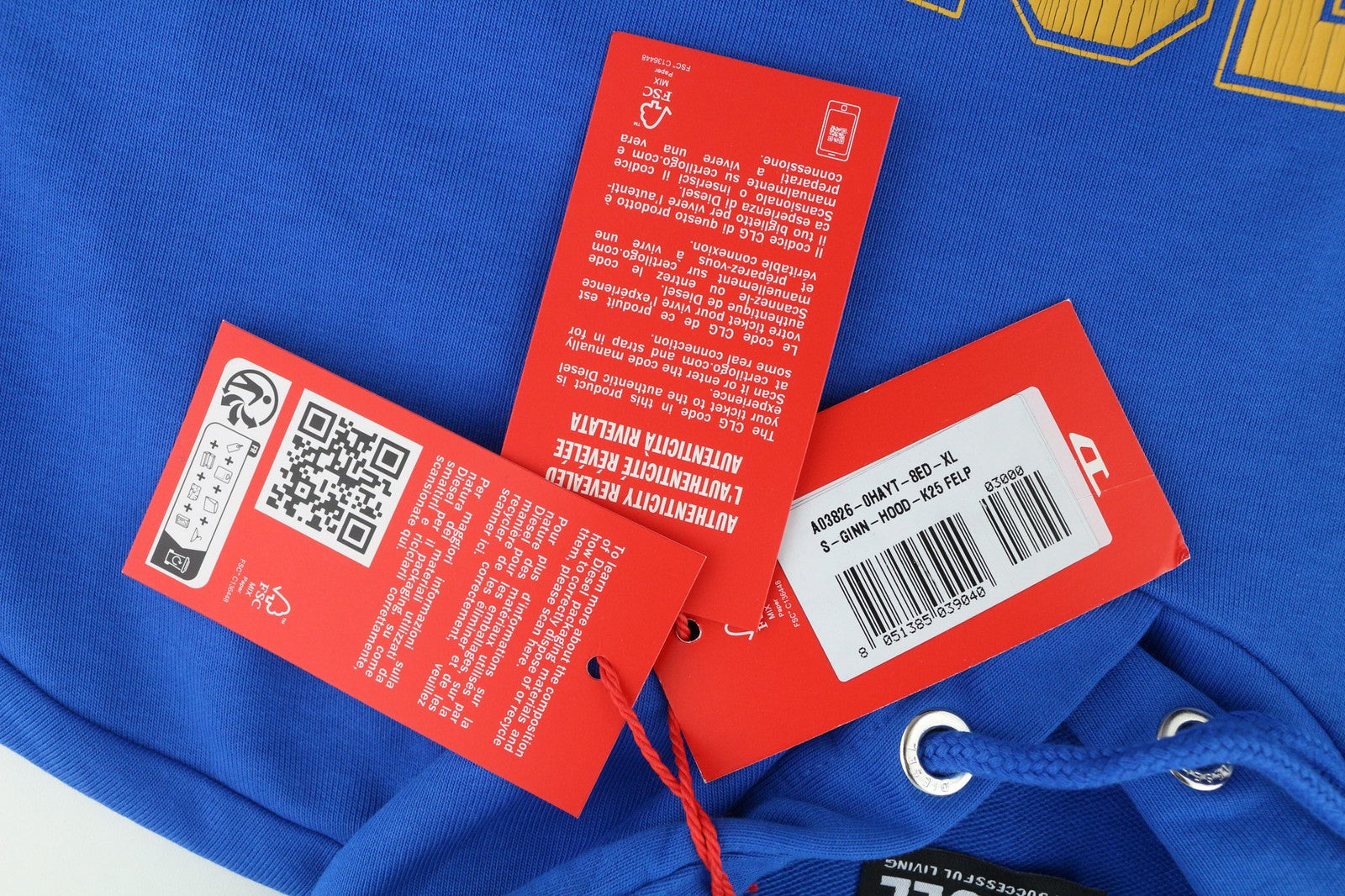 DIESEL S-Ginn-Hood-K25 vyriškas džemperis su gobtuvu, XL dydžio, mėlynas, didelis megztinis su kengūra, rekomenduojama kaina – 125 €