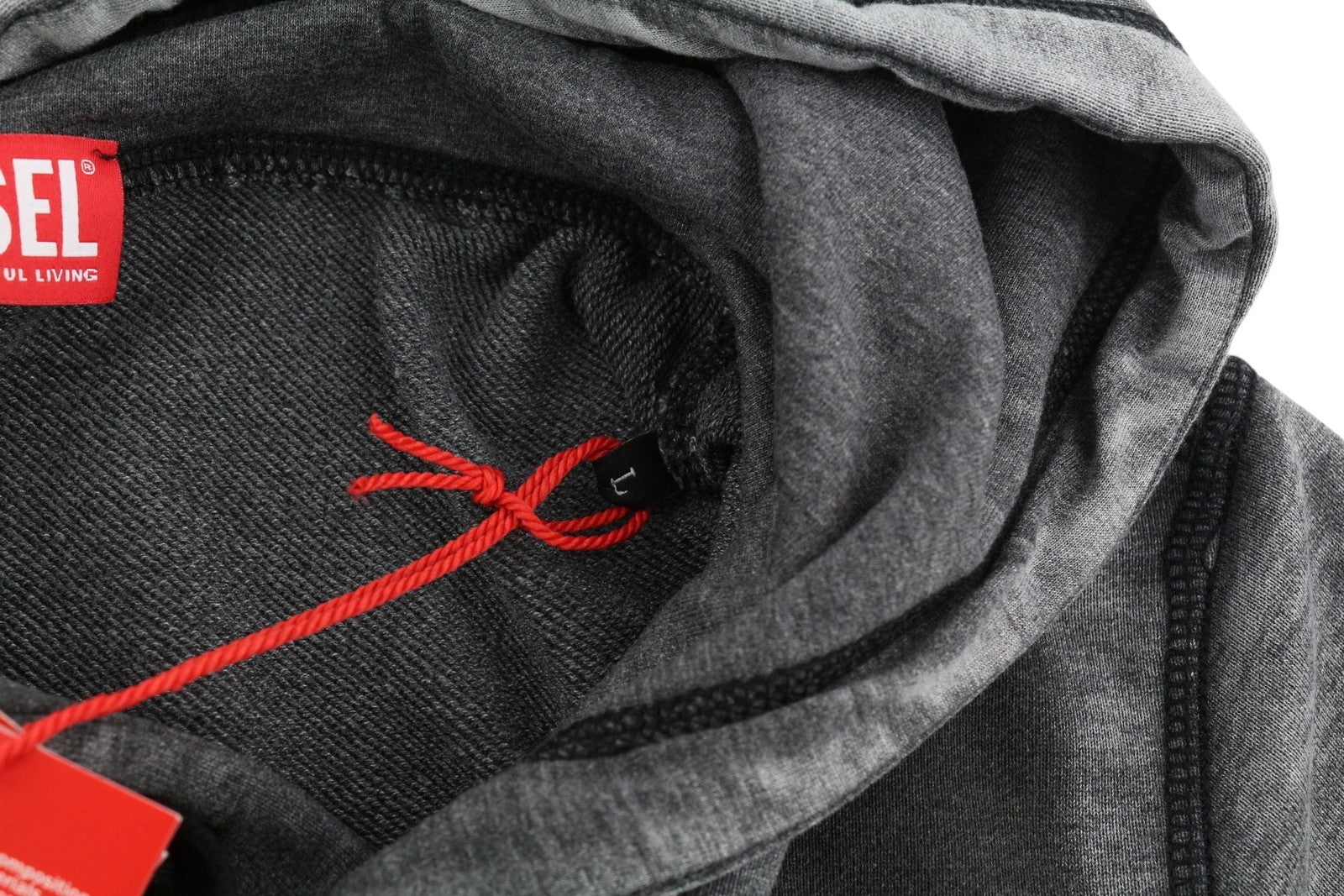 DIESEL S-Ginn-Hood-L1 vyriškas džemperis su gobtuvu L dydžio, pilkas, skalbtas, megztinis su kengūros kišene, rekomenduojama kaina – 250 €
