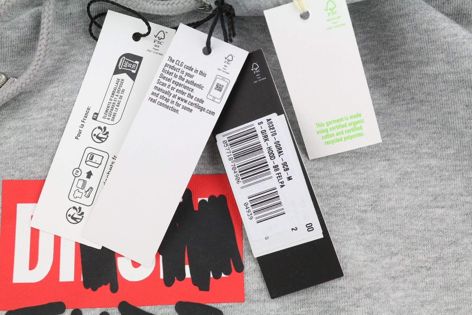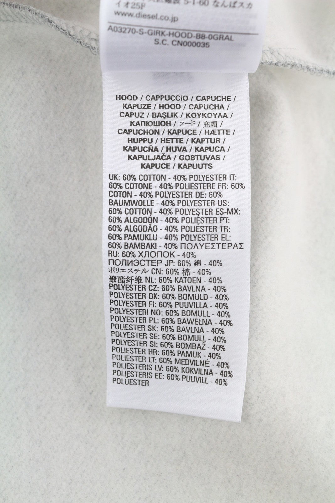 DIESEL S-Girk-Hood-B8 vyriškas džemperis su gobtuvu M pilkos spalvos melanžo spalvos su kengūros gobtuvu, rekomenduojama kaina – 130 €