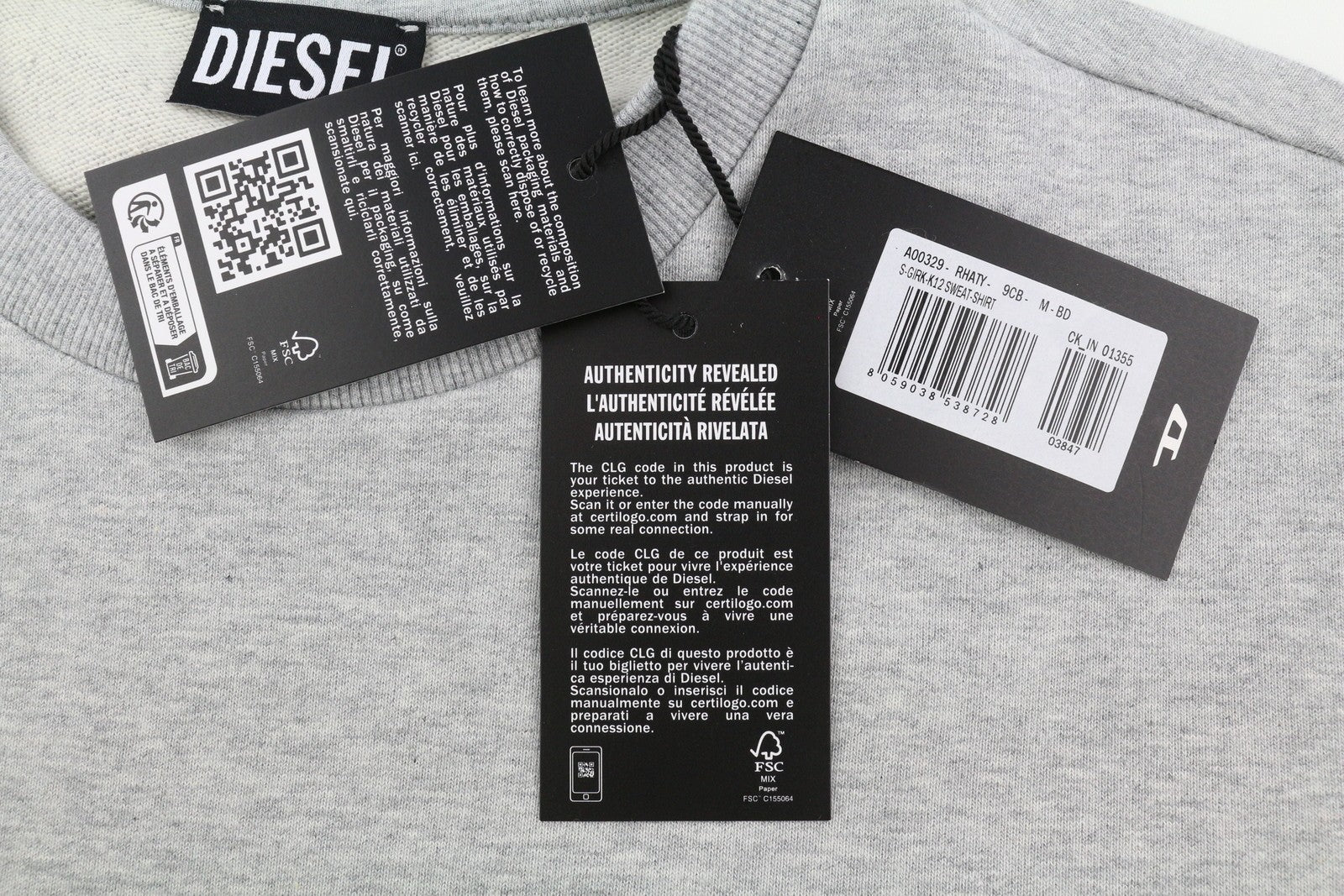 DIESEL S-Girk-K12 vyriškas džemperis M melanžo pilkos spalvos su apvalia kaklo iškirpte ir logotipu, rekomenduojama kaina – 100 €
