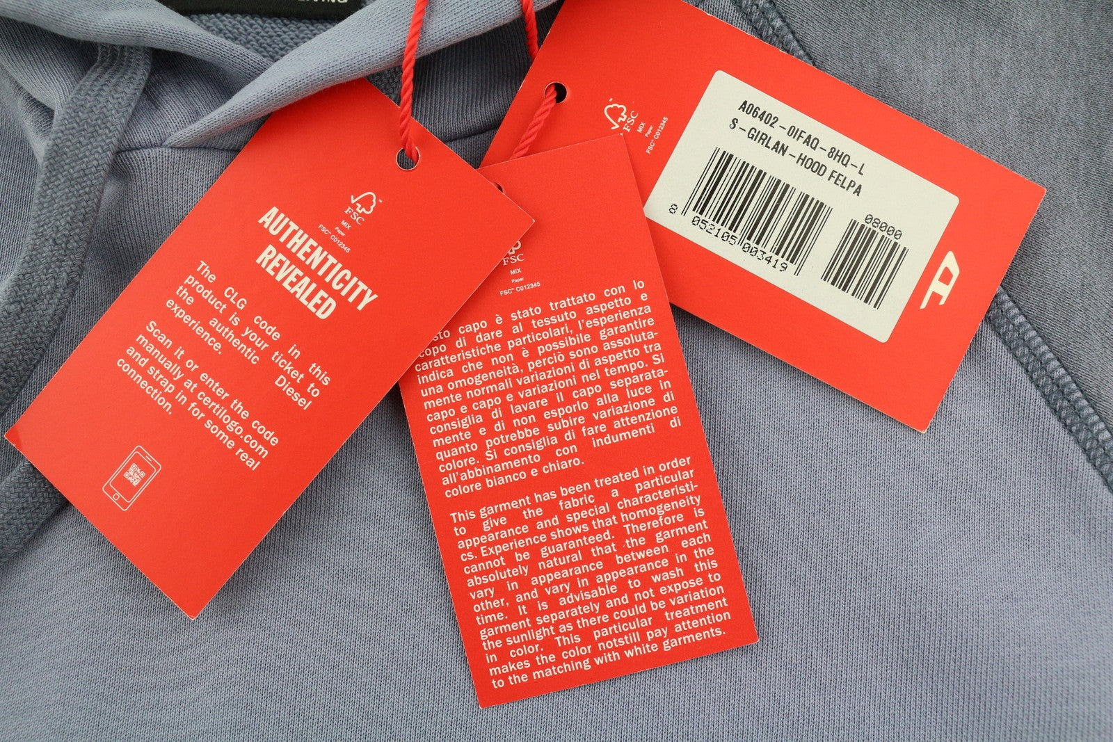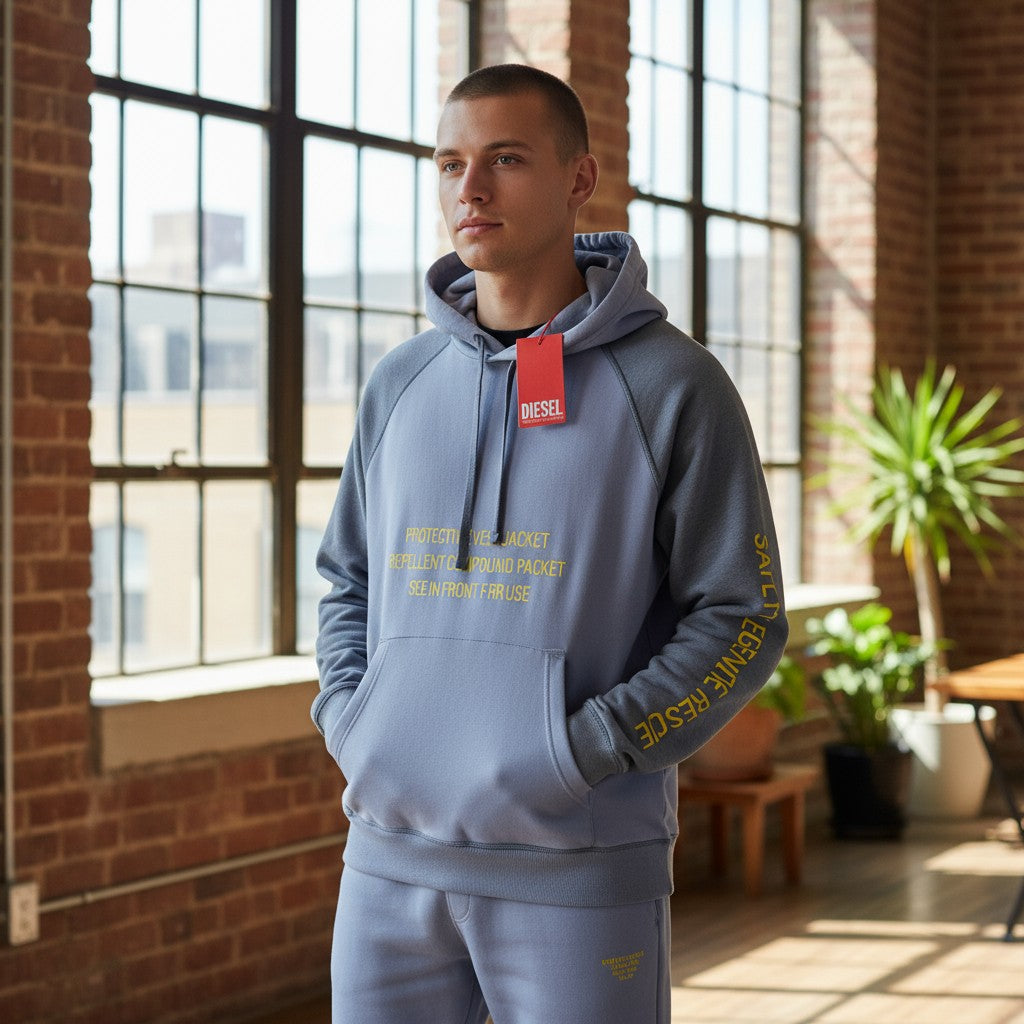 DIESEL S-Girlan-Hood vyriškas džemperis su gobtuvu, L dydžio, mėlynas, megztinis su kengūros kišene, RRP195