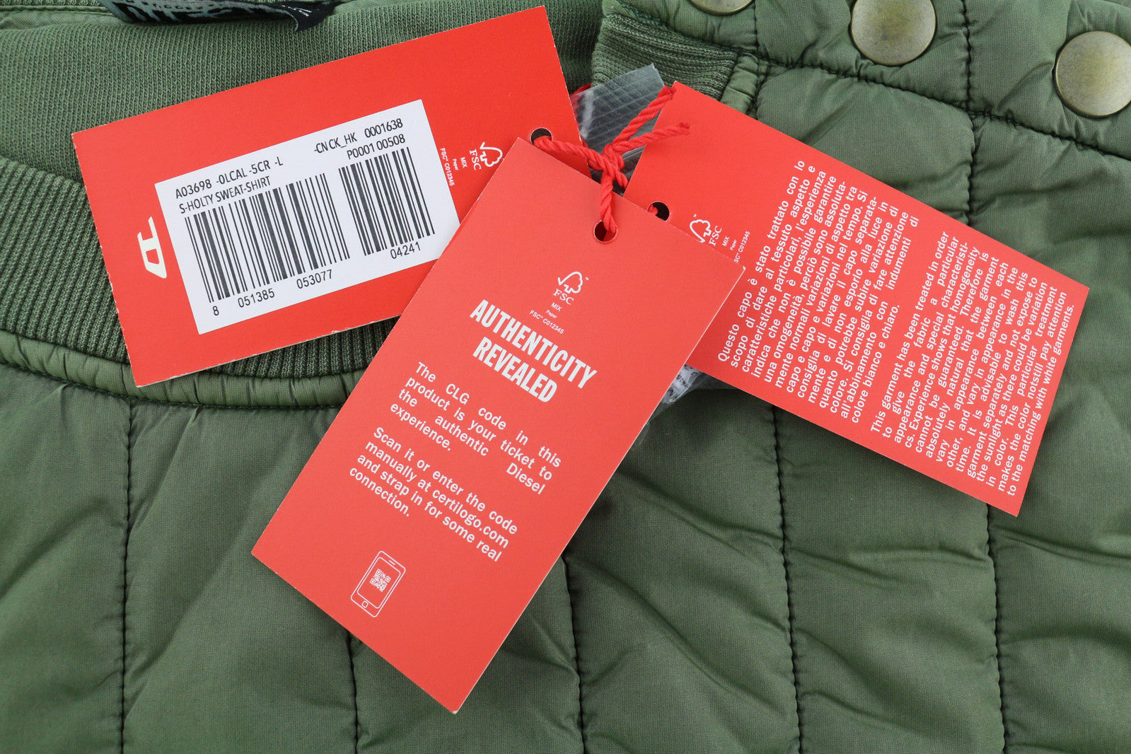 DIESEL S-Holty vyriškas džemperis, L dydžio, žalias, megztinis su paminkštinimu, dygsniuota apvalia kaklo linija, RRP225