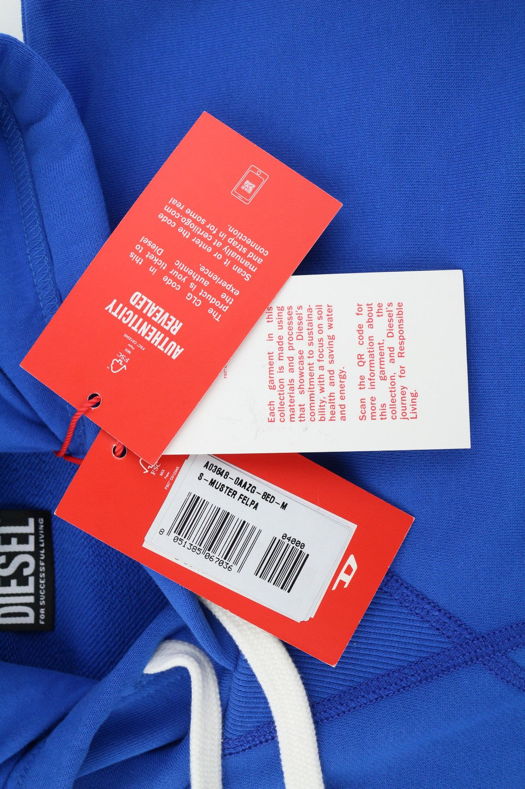 DIESEL S-Muster vyriškas džemperis su gobtuvu M, mėlynas, didelis megztinis su gobtuvu ir kišene, rekomenduojama kaina – 150 €