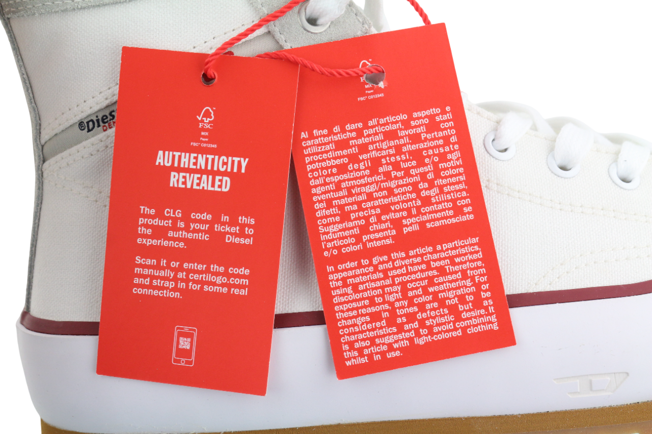 DIESEL S-Principia Mid vyriški sportbačiai, EU43, balti, aukštakulniai, nėriniuoti, rekomenduojama kaina – 185 €