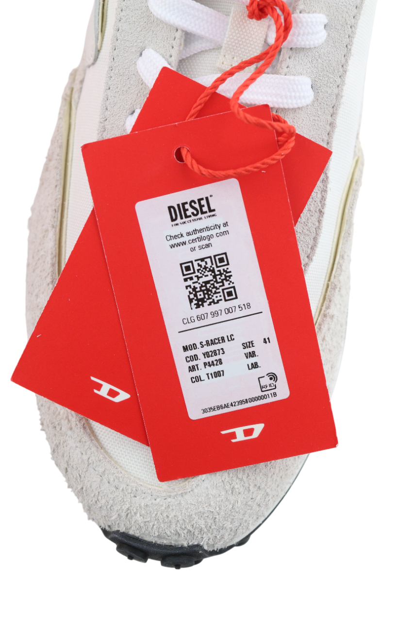 DIESEL S-Racer-Lc vyriški sportbačiai, 41 dydis, balti, odiniai, su nėriniuotais aulais, kaina 195 €.