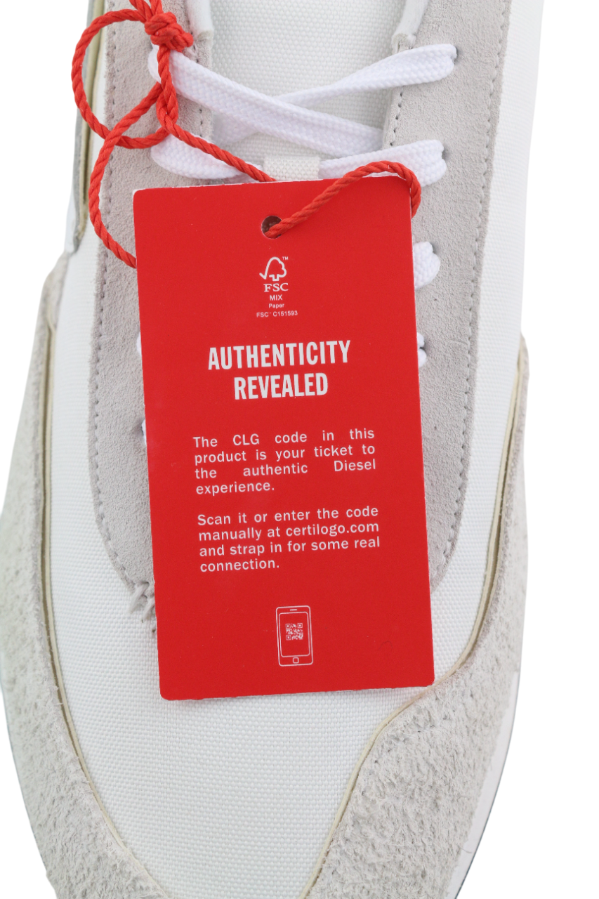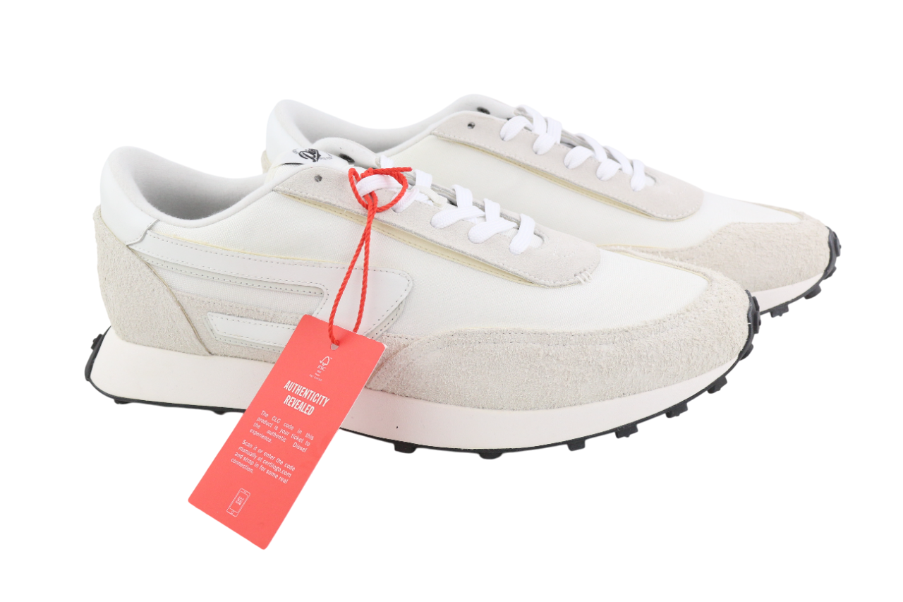 DIESEL S-Racer-Lc vyriški sportbačiai, 45 €, baltos odos, rekomenduojama mažmeninė kaina – 195 €