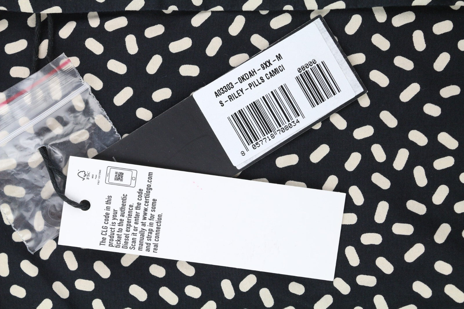 DIESEL S-Riley-Pills vyriški marškinėliai M raštuoti sagomis užsegami platėjančios apykaklės raštu RRP110